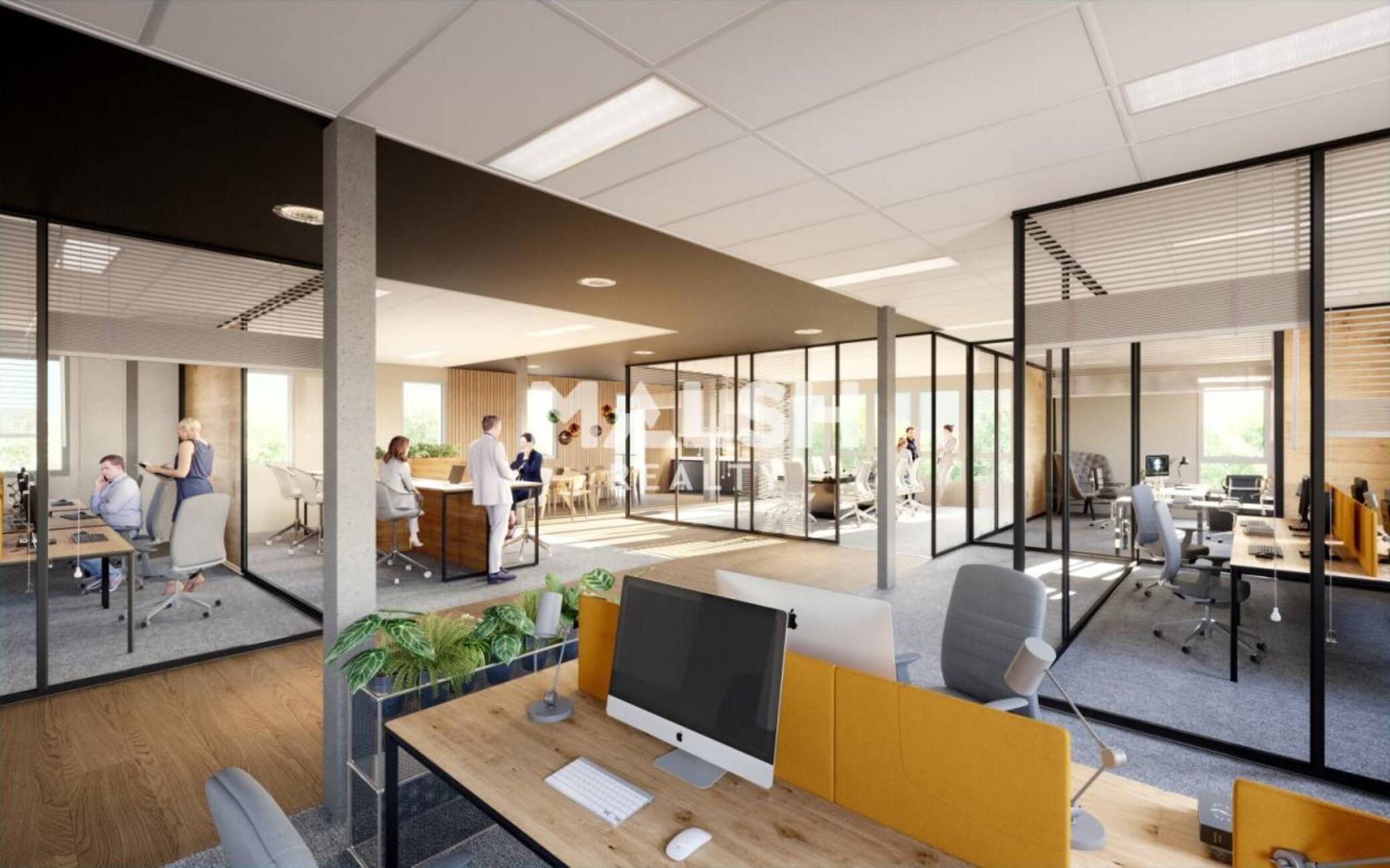 - Locaux livrés en plateaux non cloisonnés