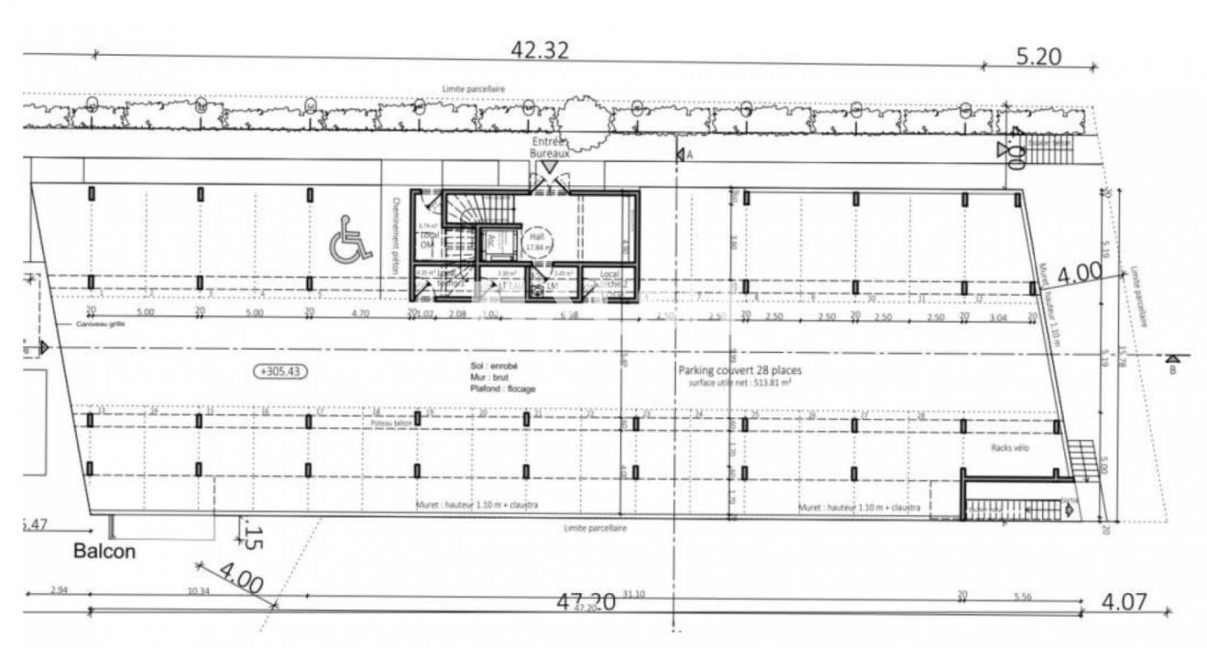 - Stationnement : 2 places doubles, 2 places préfourreautées, 1 place simple.
