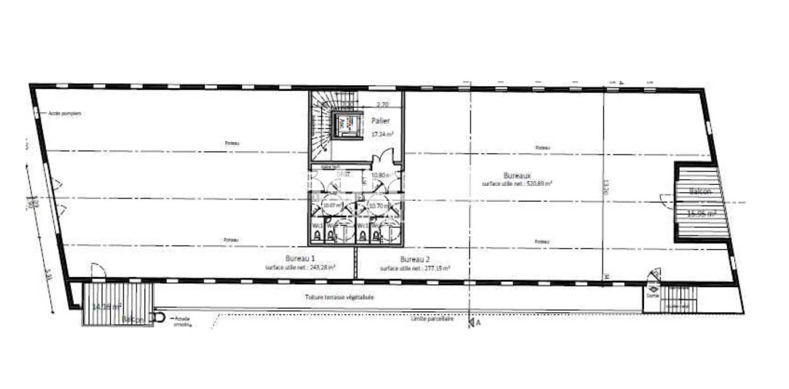 - Chaque plateau dispose de 2 terrasses extérieures d'environ 15m² chacune exposées Est et Sud.