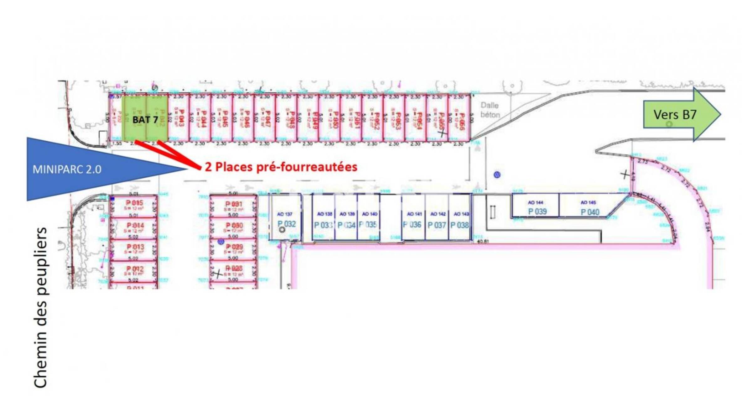 Place pré-fourreautée 9 500 euros HT/uConditions particulières à la location : Place de parking standard (aérien) 350 euros HT HC / an
