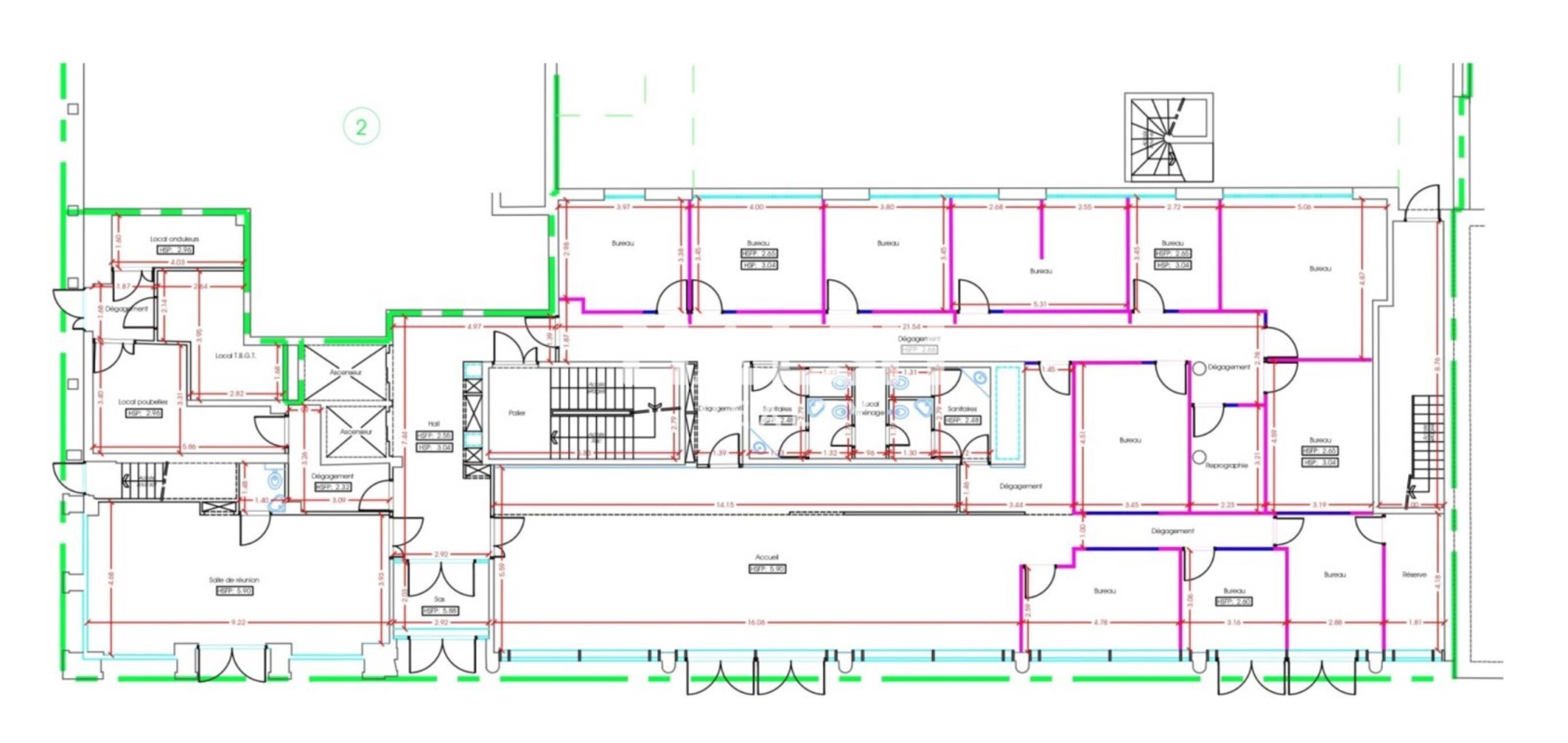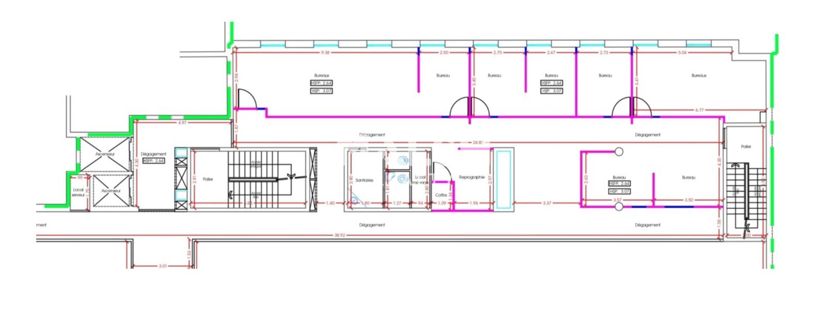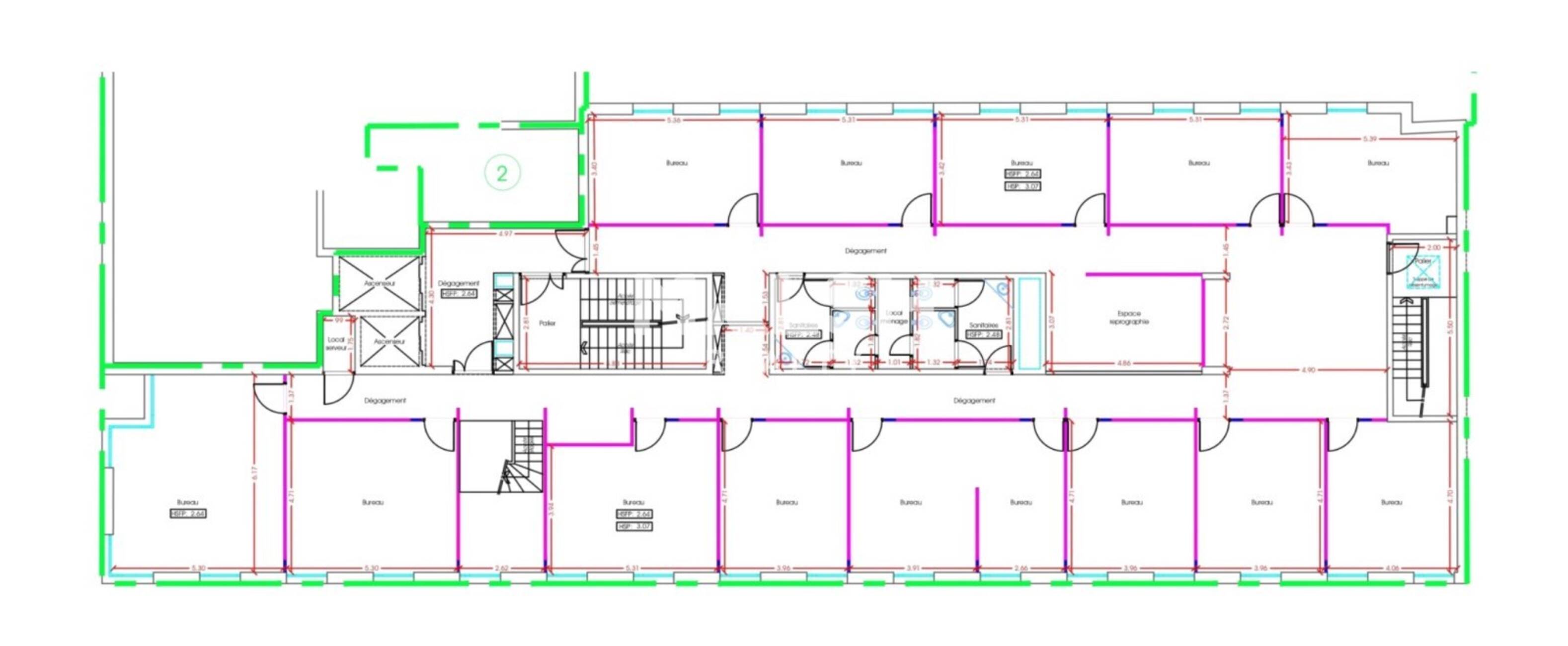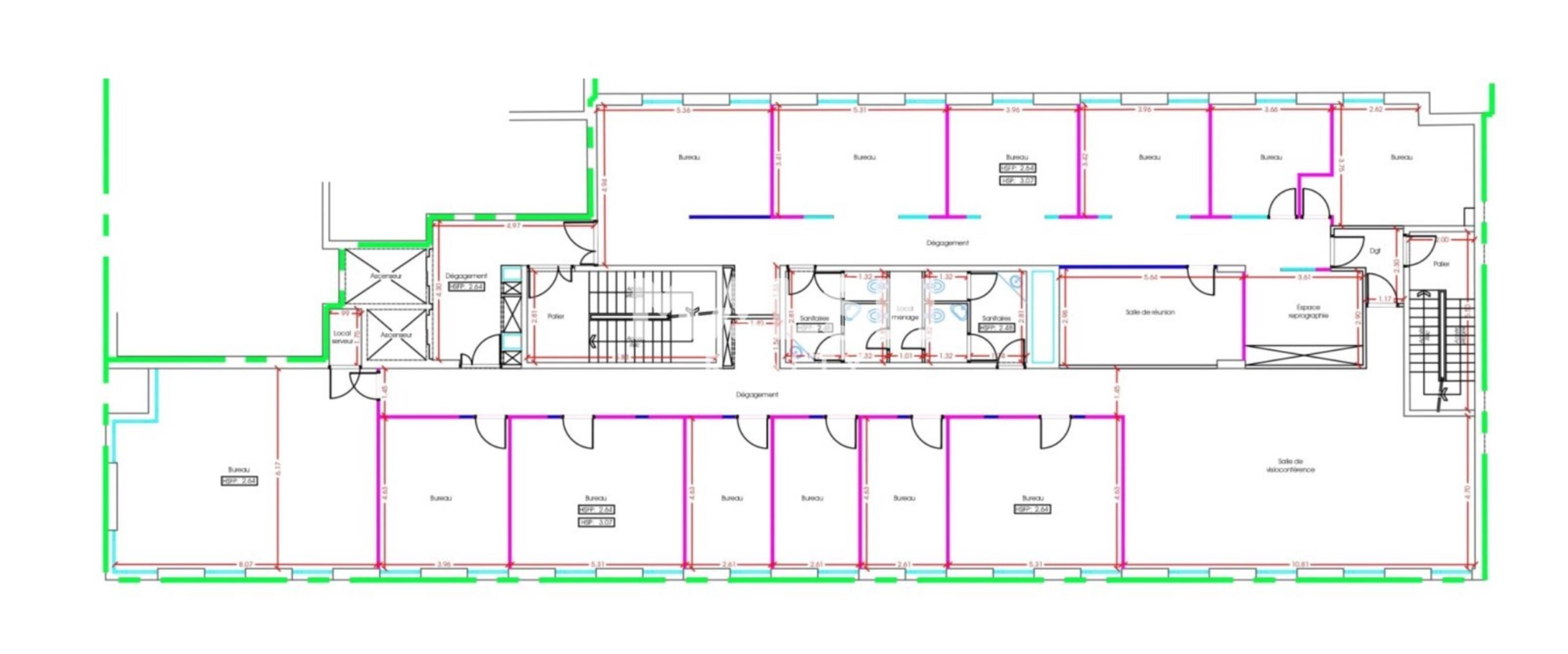 - Locaux lumineux, bon standing, aménagés et cloisonnés (cloisonnement amovible : cloisons et portes toute hauteur)
