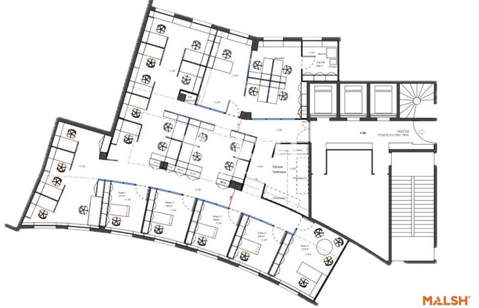 - Bureaux cloisonnés et open space