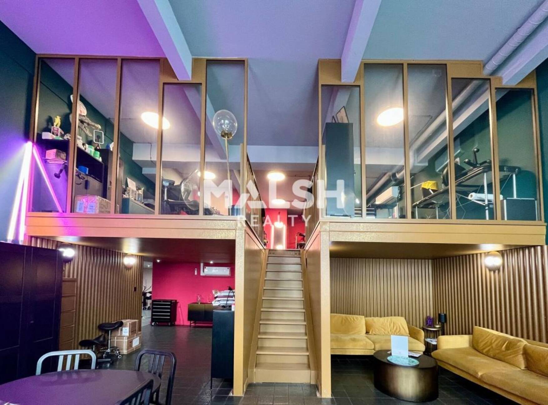 - Les locaux se composent d'un espace principal complété par des surfaces en mezzanine, permettant une organisation de travail flexible.