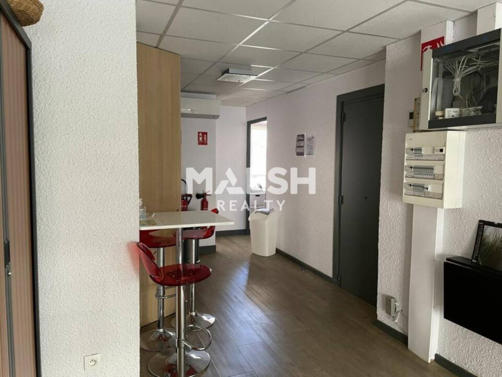 - A l'étage 46 m²: dégagement, kitchenette équipée + 2 bureaux individuels