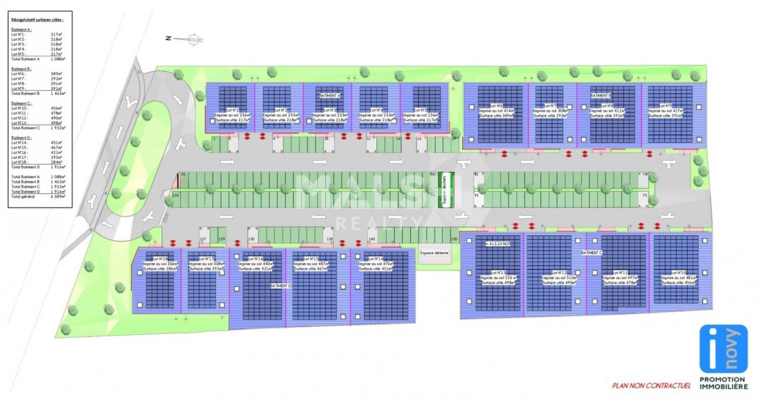 MALSH Realty & Property propose à la vente, un nouveau parc d'activités dénommé INOVY sur la commune d'Andrézieux, qui se compose de 4 bâtiments (A > D) articulé autour d'un parking central. Au total, l'Inovy Park se regroupe 18 locaux d'activités de 300m² à 1500m² modulables . Chaque local dispose d'une mezzanine de 100m² minimum à aménager pour des bureaux ou réserve