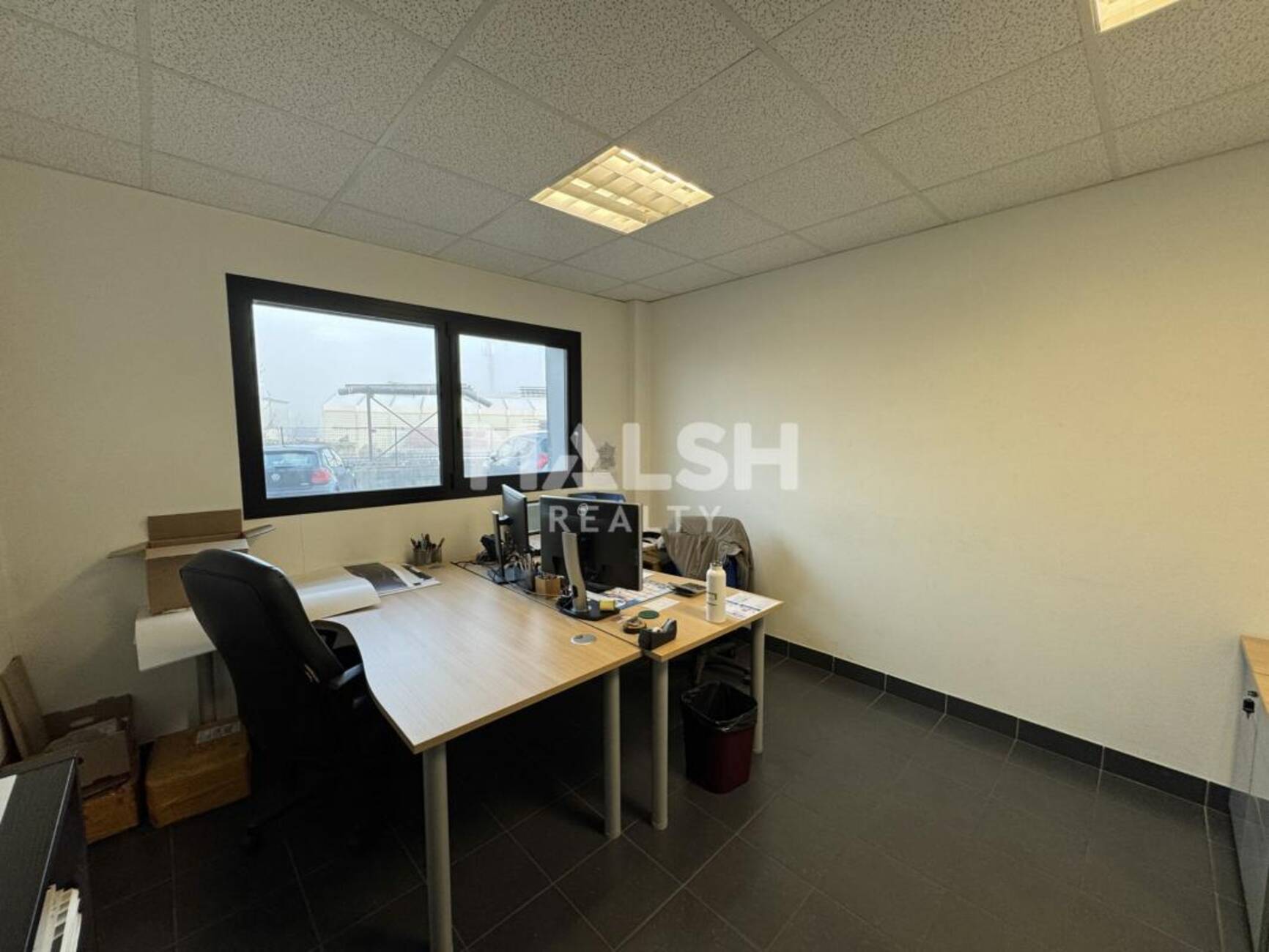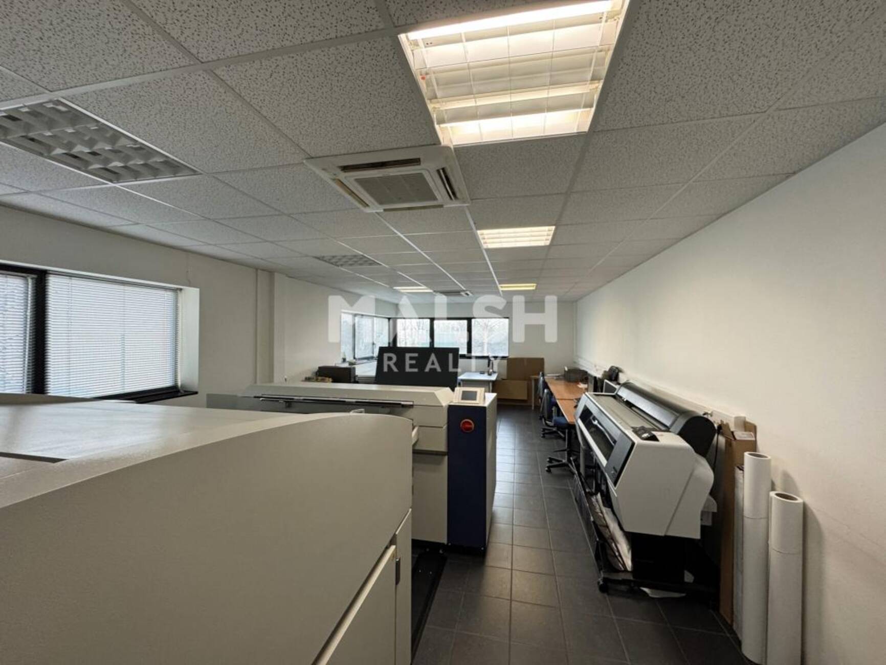 - Faux plafond dalles avec luminaires encastrés néons,