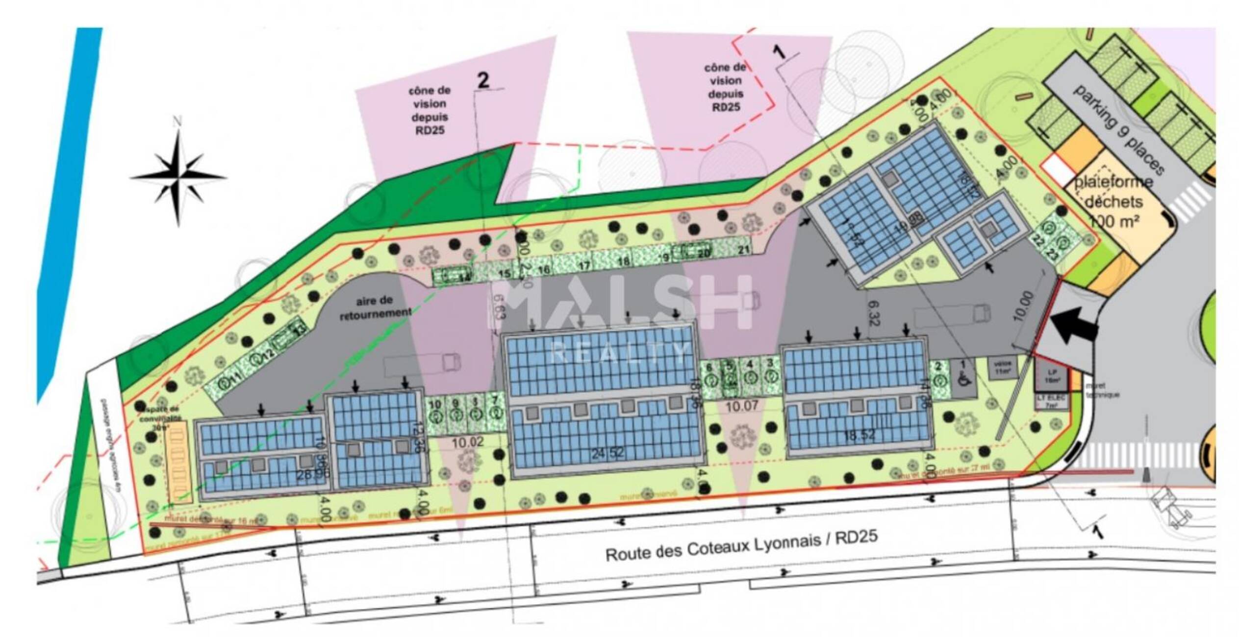 - 23 emplacements de parking extérieurs