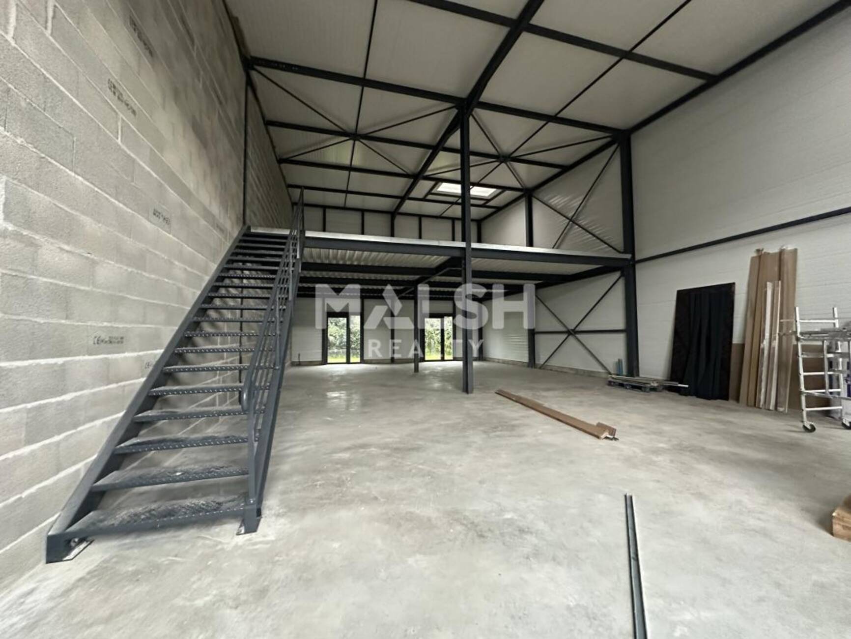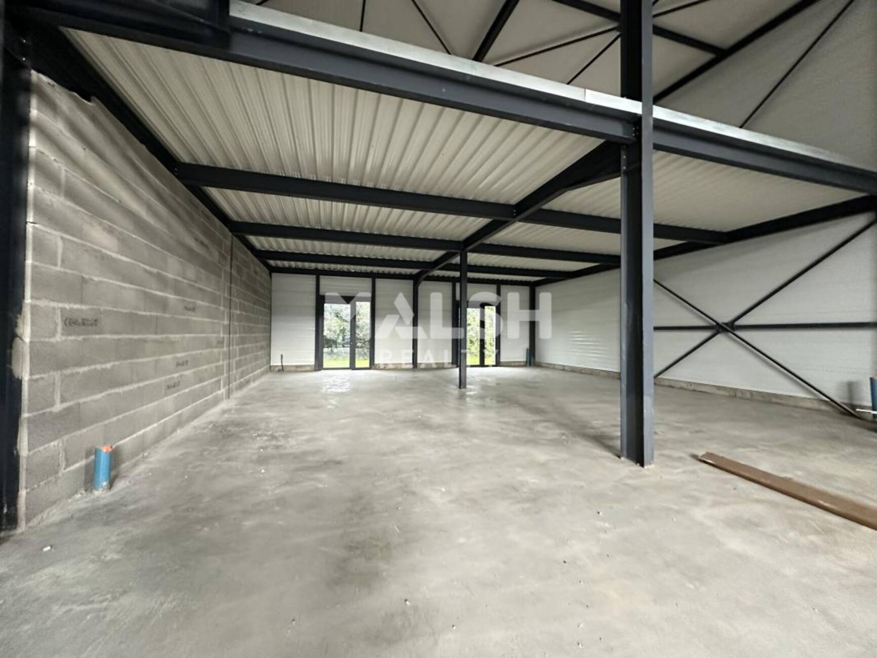 Local livré brut, fluides en attente. L'électricité est livré avec compteur et consuel réglé et portes sectionnelles raccordées.