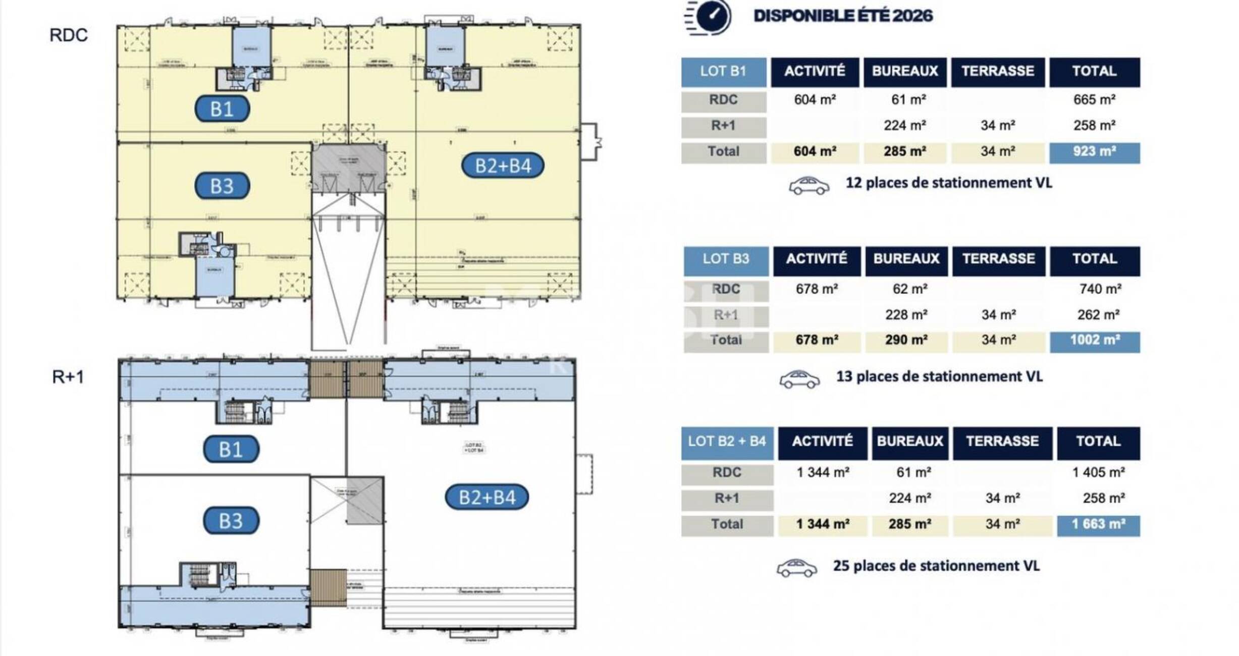 | Total Cellule B2-B4 | Activités | 1 629 | Été 2026 | 114,79 HT/HC/m²/an | 15 % HT d'un an de loyer HT à la charge du preneur, payables à la signature du bail | T.V.A. (20%) | commercial 6/9/12 ans | ILAT Indice des Loyers des Activités Tertiaires | Trimestriel d'avance | B2-B4 | ||||||||