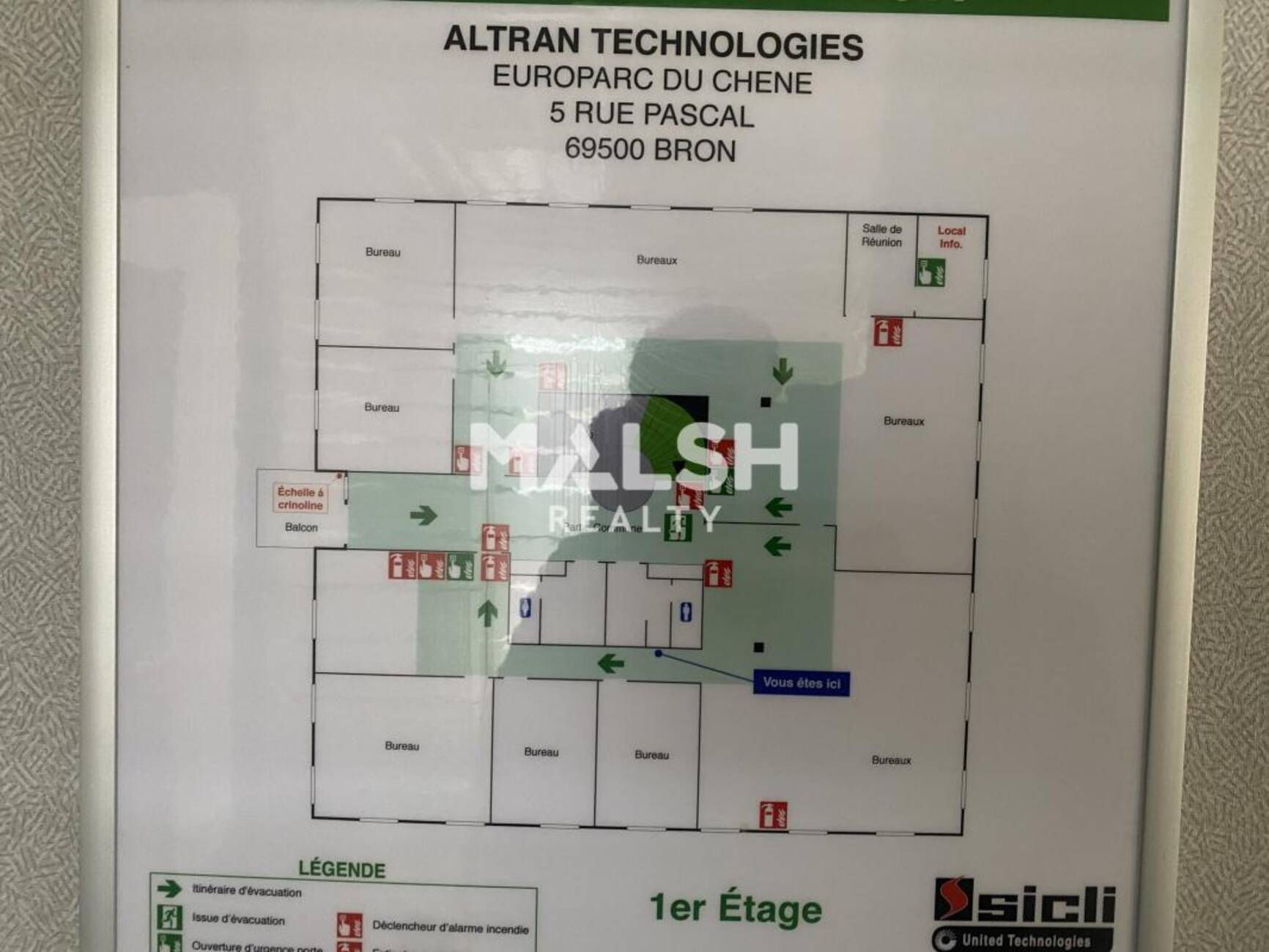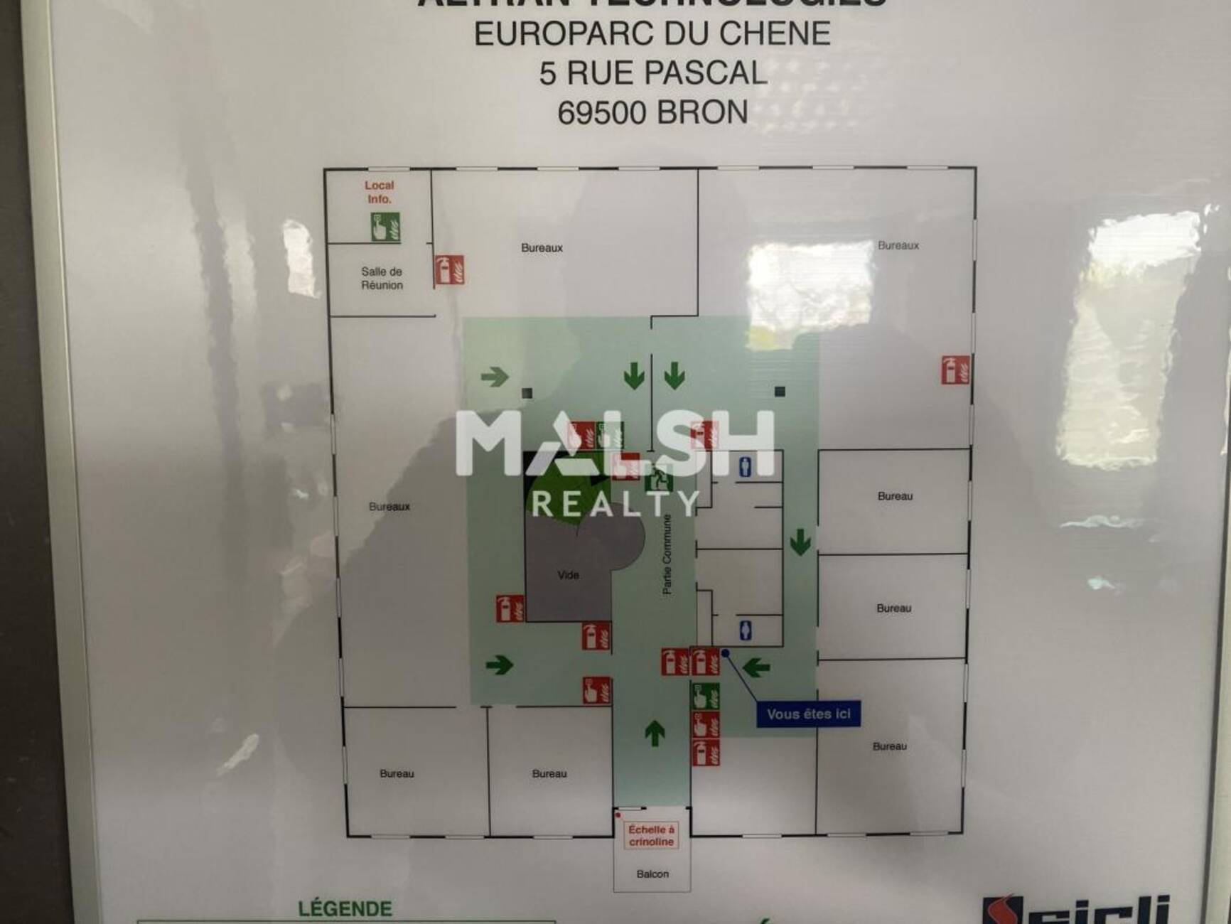Ces bureaux sont situés au sein d'un parc tertiaire situé sur la commune de BRON.