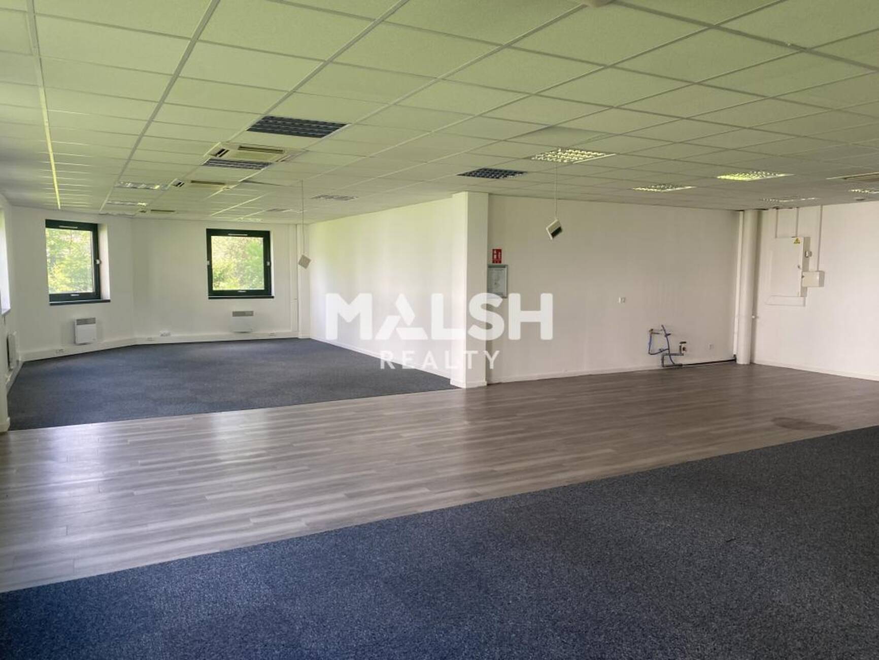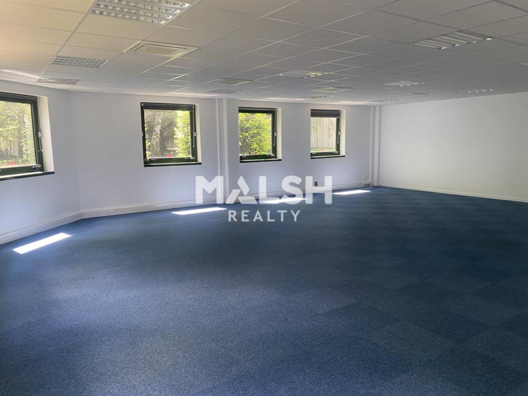 MALSH Realty vous propose à la location, des bureaux d'une superficie totale de 1 006 m² divisibles dès 91 m² dans un parc arboré en bordure d'un étang.