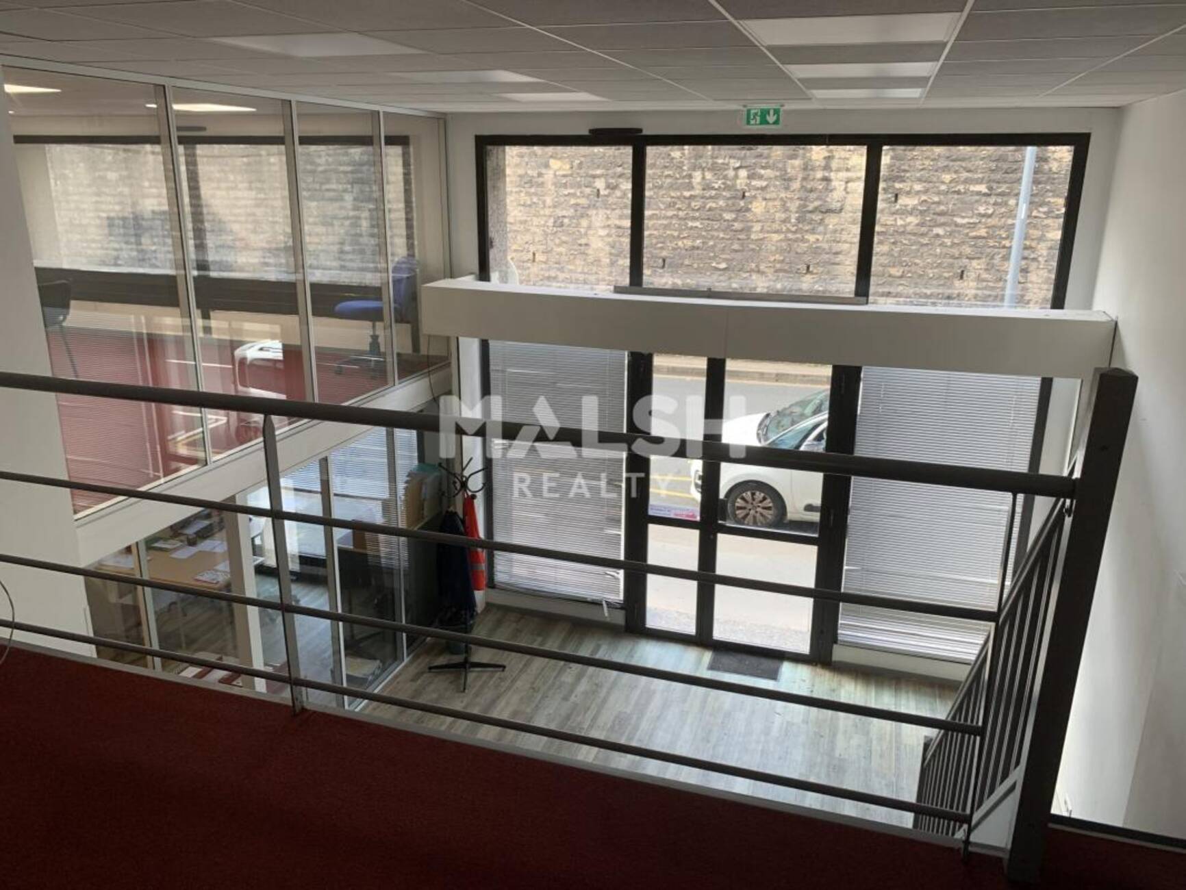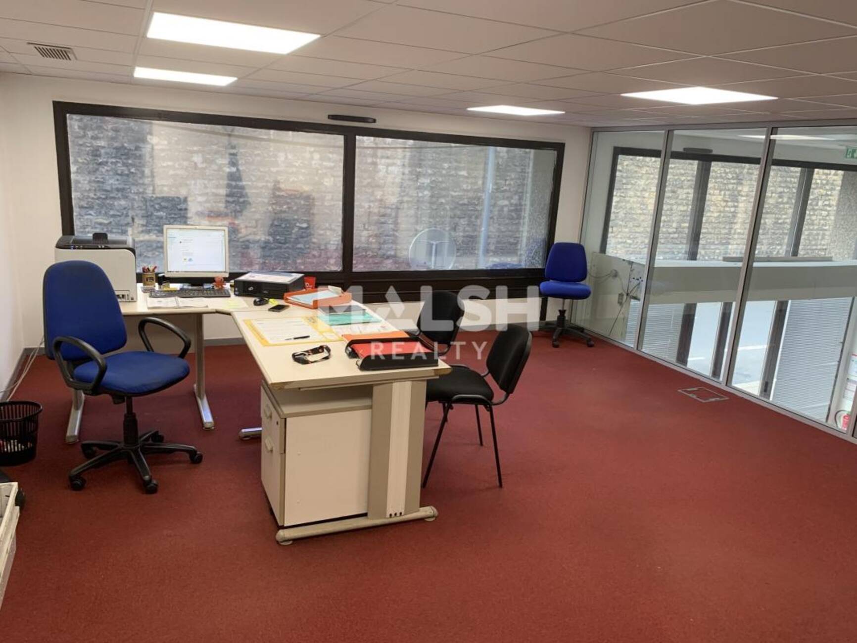 - Locaux aménagés : Sanitaires privatifs, Faux plafonds acoustiques, Précâblage informatique et téléphonique, Prises RJ45
