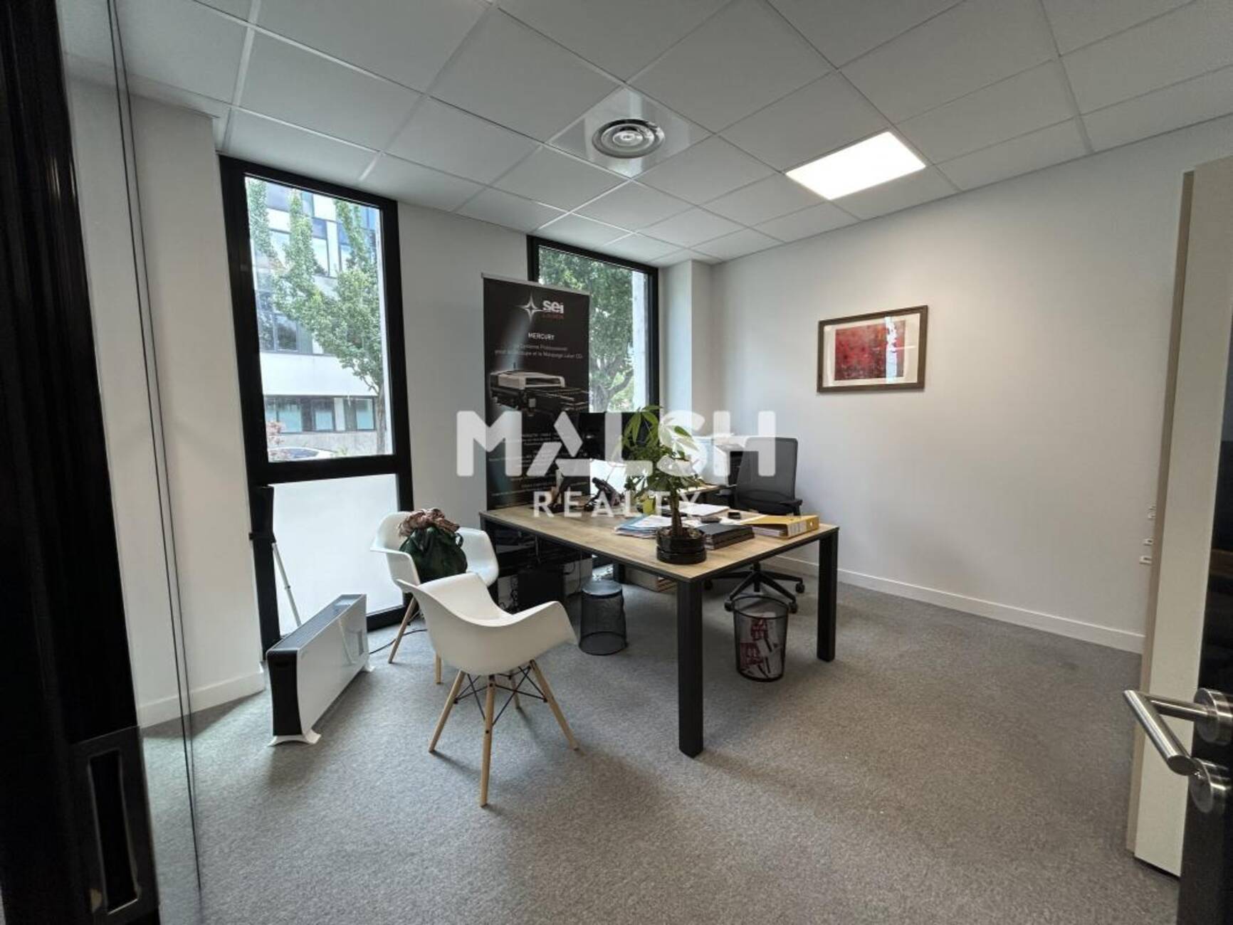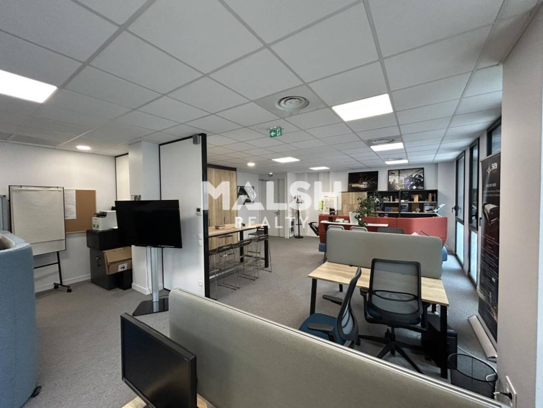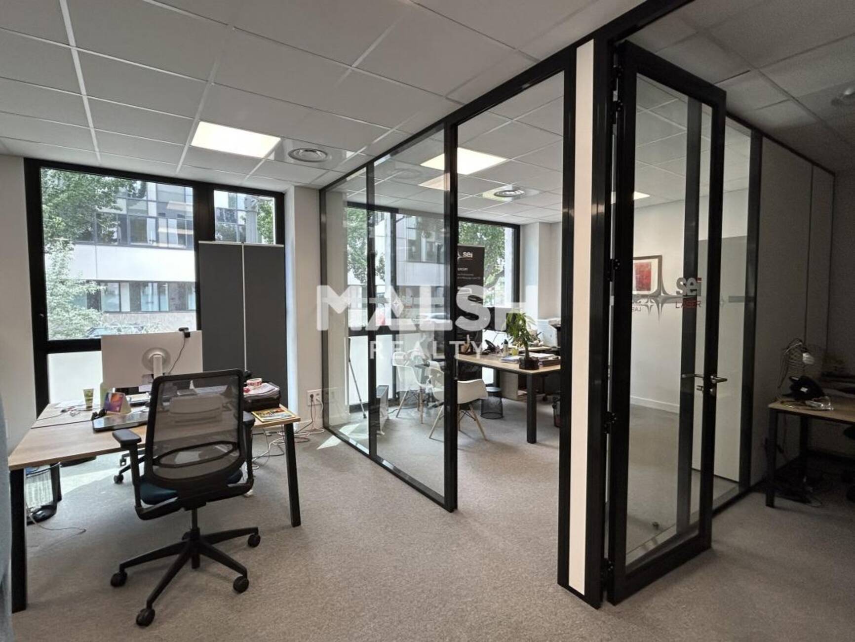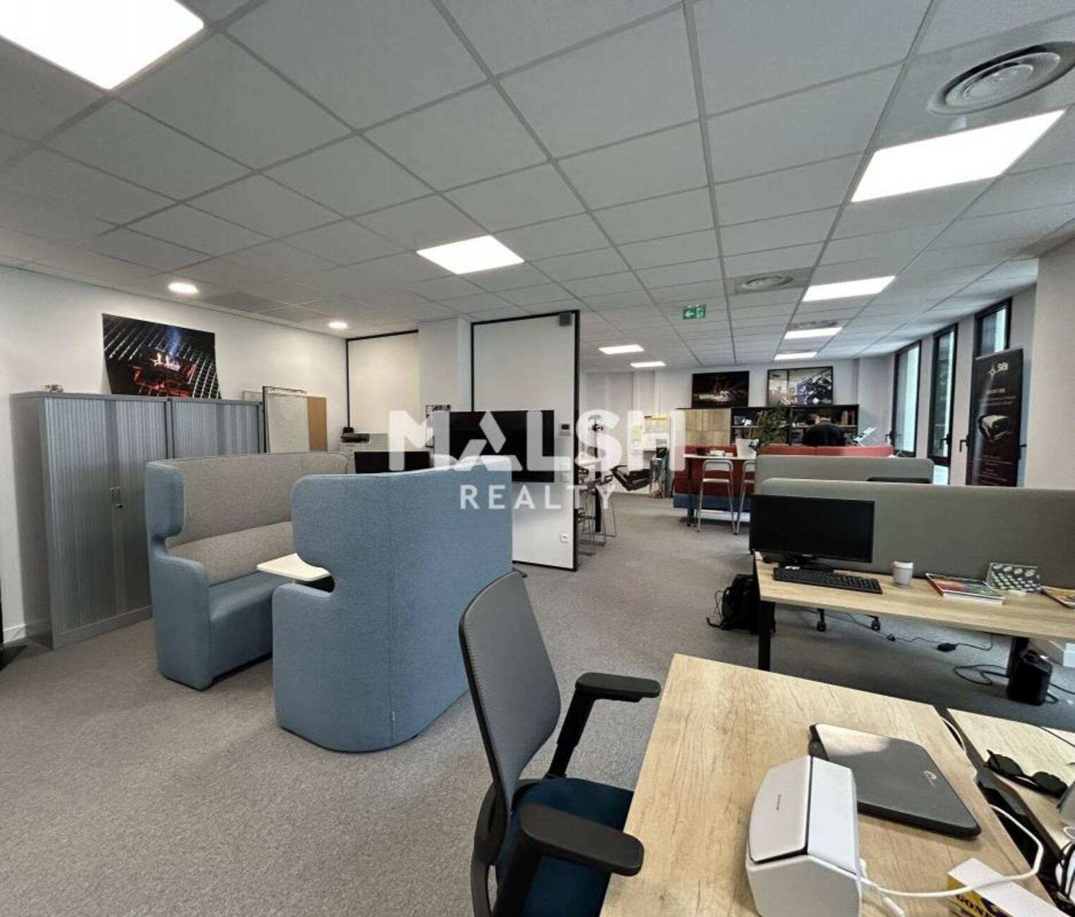 - Grand open space, espace kitchenette équipé, 2 bureaux individuels.