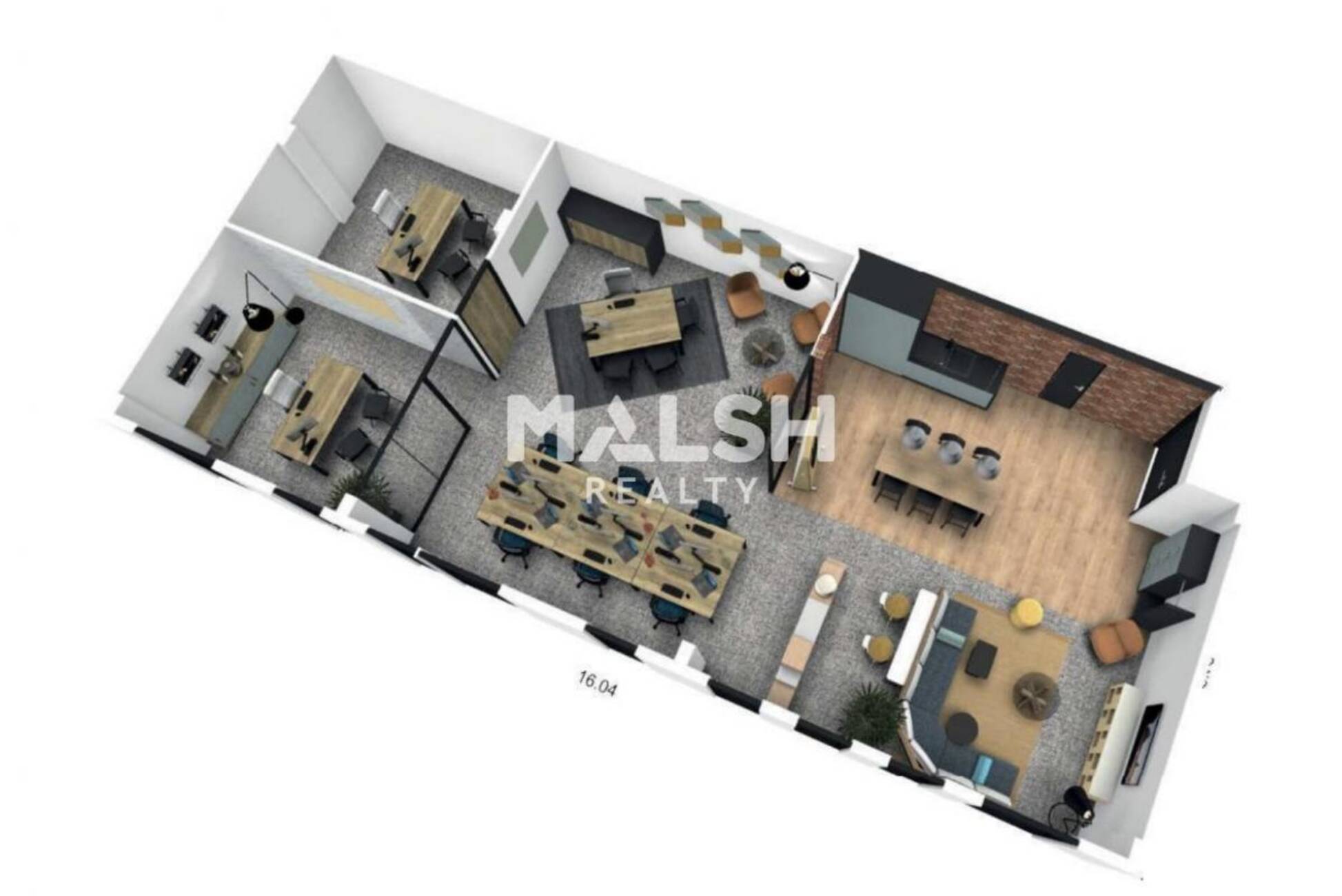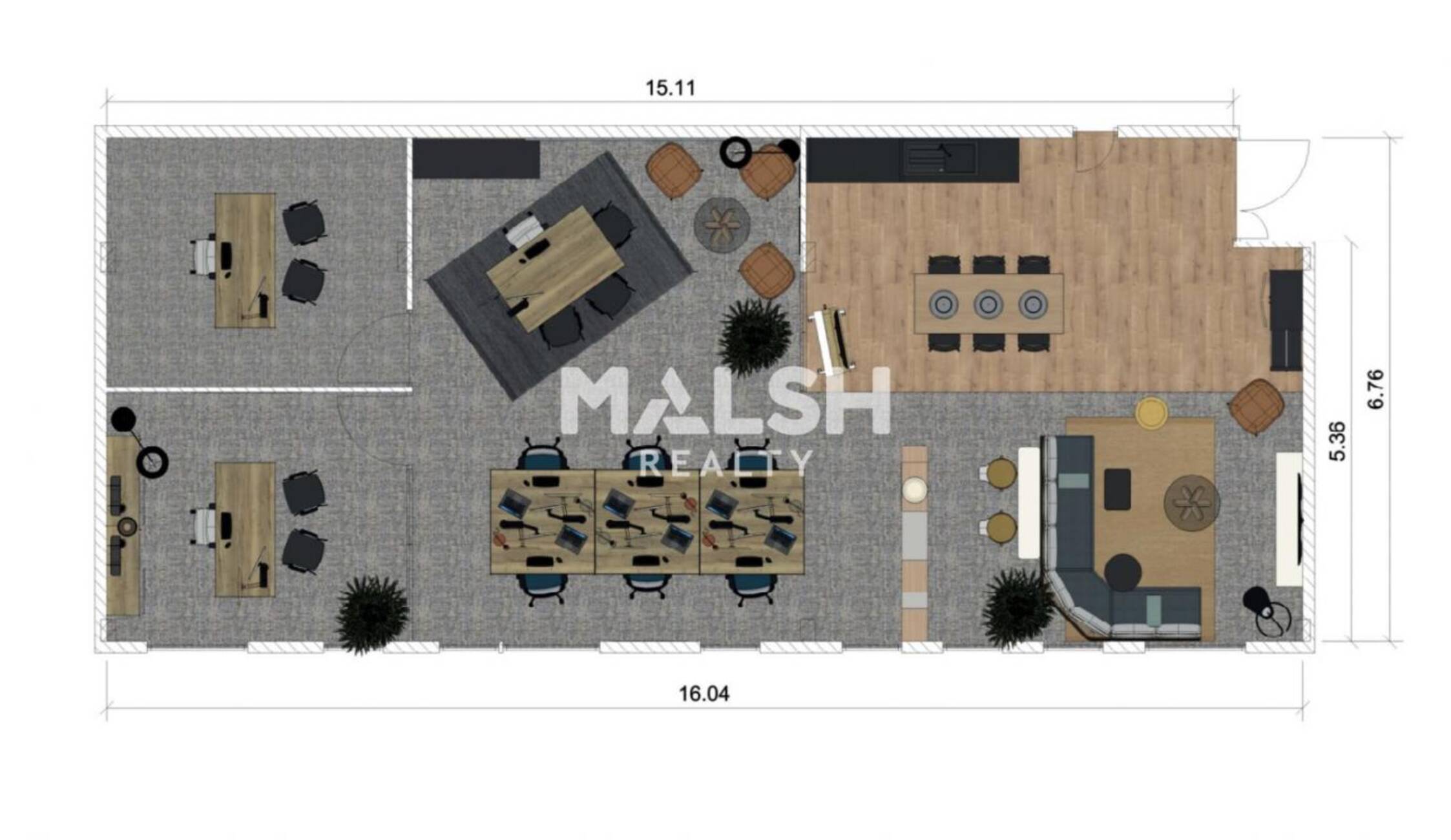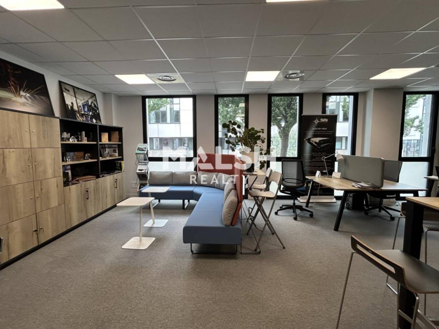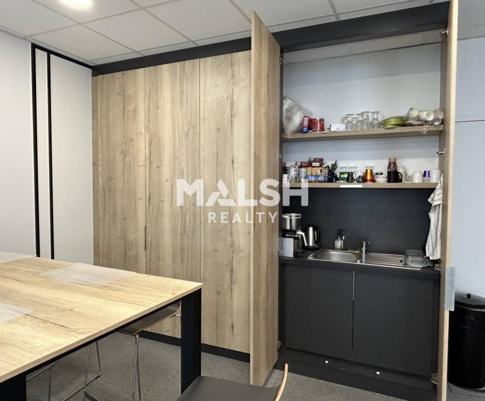 - Grand open space, espace kitchenette équipé, 2 bureaux individuels.