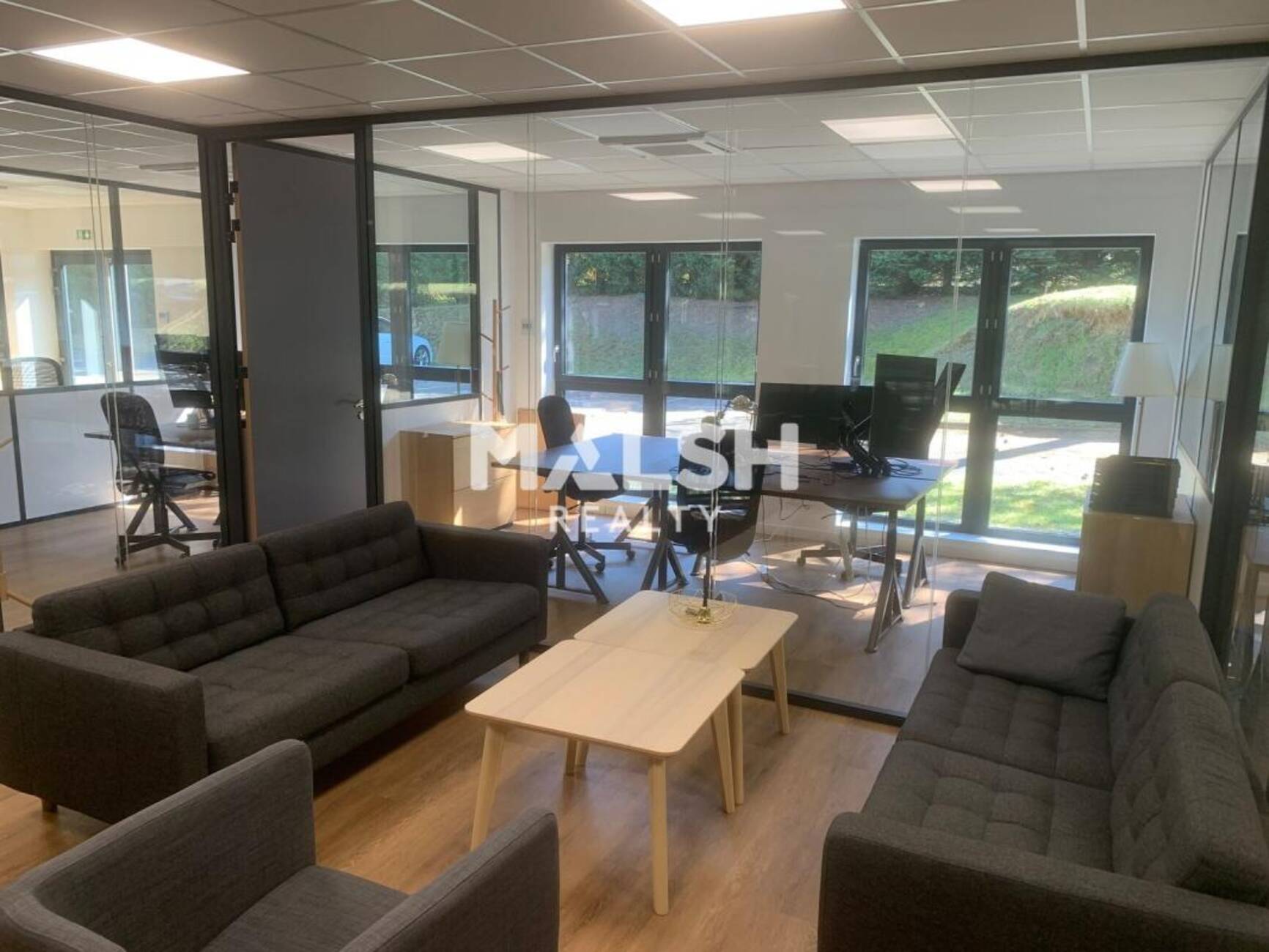 MALSH Realty vous propose à la location des bureaux d'environ 205 m² situés à Rillieux-la-Pape, dans un secteur dynamique et bien desservi, à proximité des principaux axes de circulation et des commodités du quartier. Ces locaux offrent un espace cuisine/détente convivial ainsi que quatre bureaux équipés, d'une surface comprise entre 11 et 17 m², permettant d'accueillir confortablement une activité tertiaire ou de services. L'ensemble bénéficie d'un cadre de travail fonctionnel et agréable, idéal pour une entreprise souhaitant conjuguer confort, accessibilité et qualité d'emplacement.