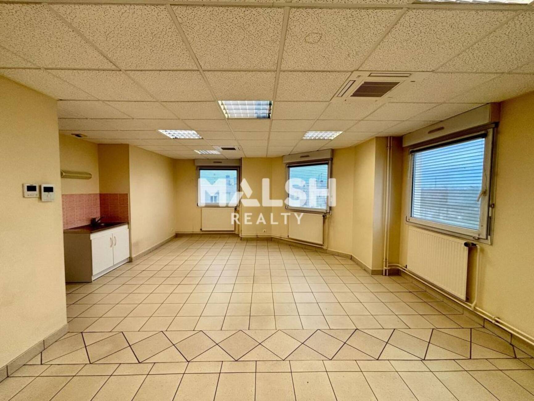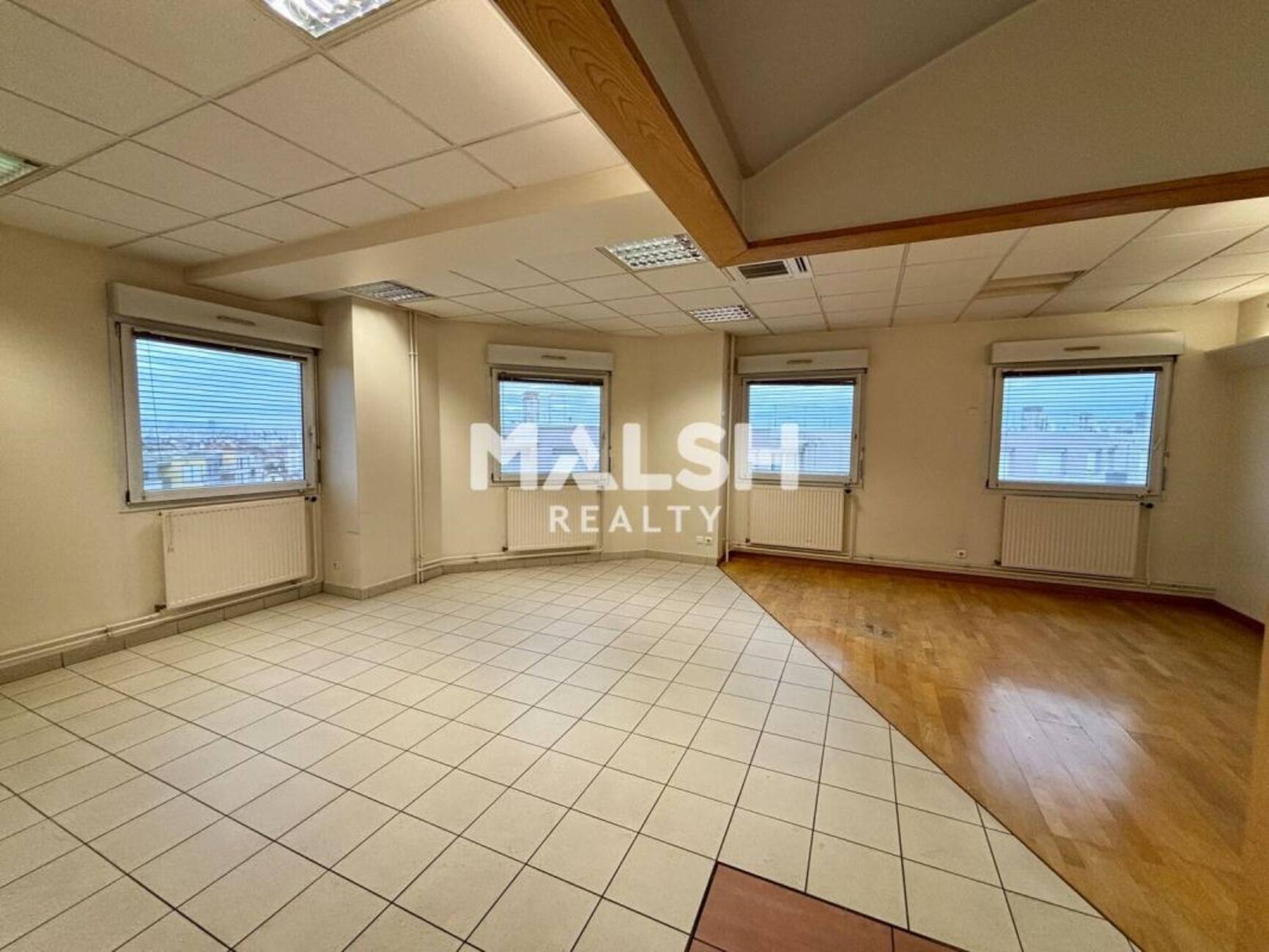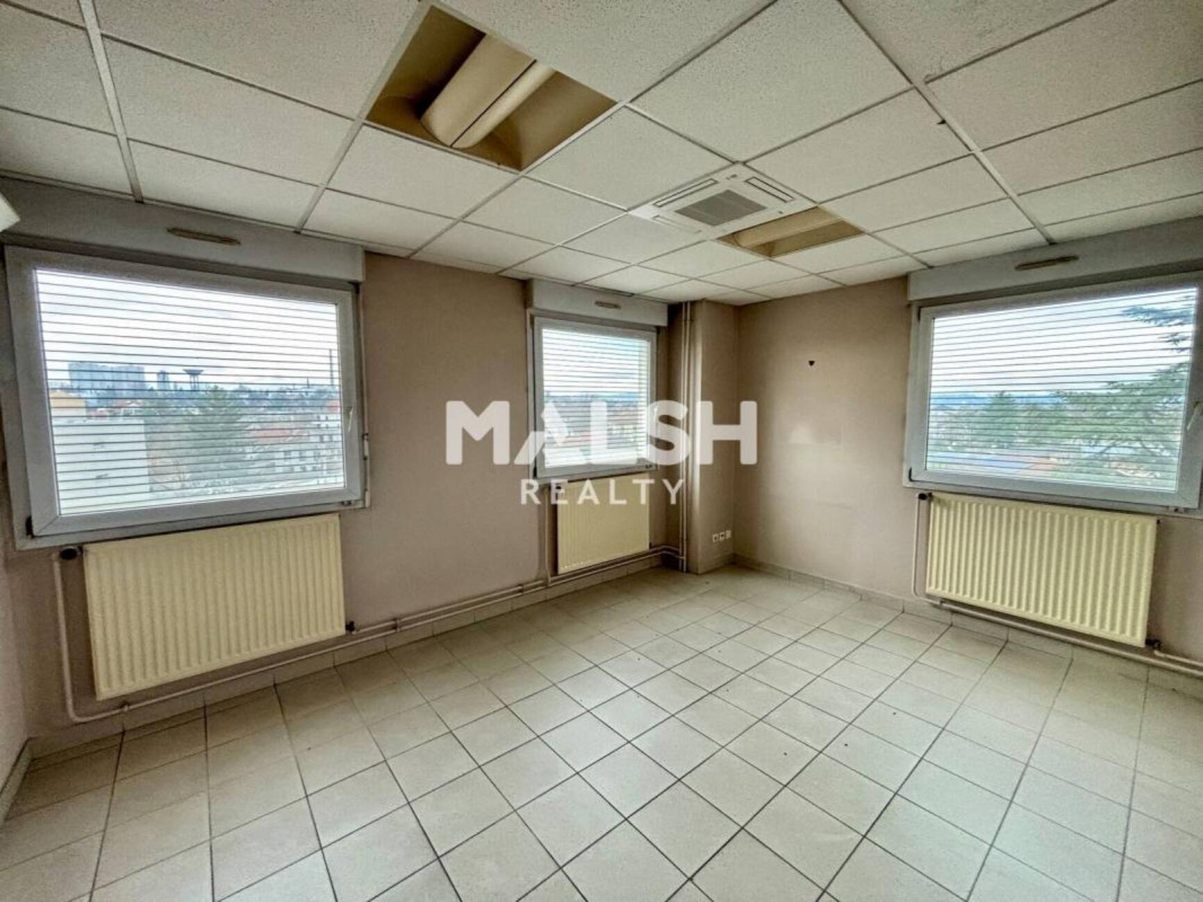 MALSH Realty vous propose des bureaux à louer d'une surface de 484 m², situés à Vénissieux à proximité immédiate de la gare, du métro D et du tramway, offrant des espaces de travail spacieux et lumineux avec une vue dégagée, une accessibilité PMR conforme ERP 5, une climatisation réversible récente pour un confort optimal, ainsi que cinq places de stationnement incluses dans le loyer.