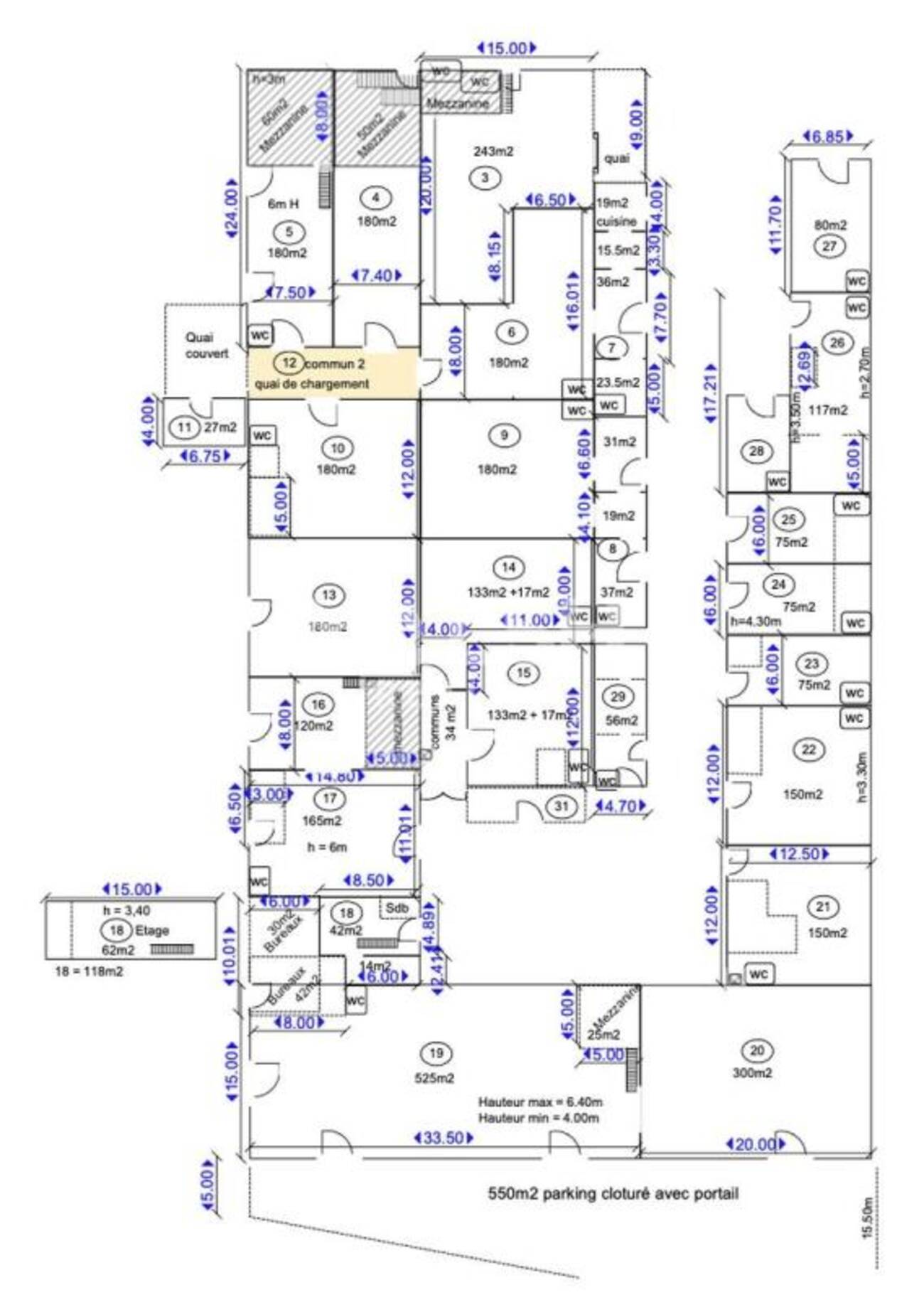 | Parties communes | 29 | Immédiate | 95 HT/HC/m²/an | 15 % HT du loyer annuel HT à la charge du preneur, payables à la signature du bail | T.V.A. (20%) | commercial 3-6-9 ans | ILAT Indice des Loyers des Activités Tertiaires | Trimestriel d'avance | ||||||||||