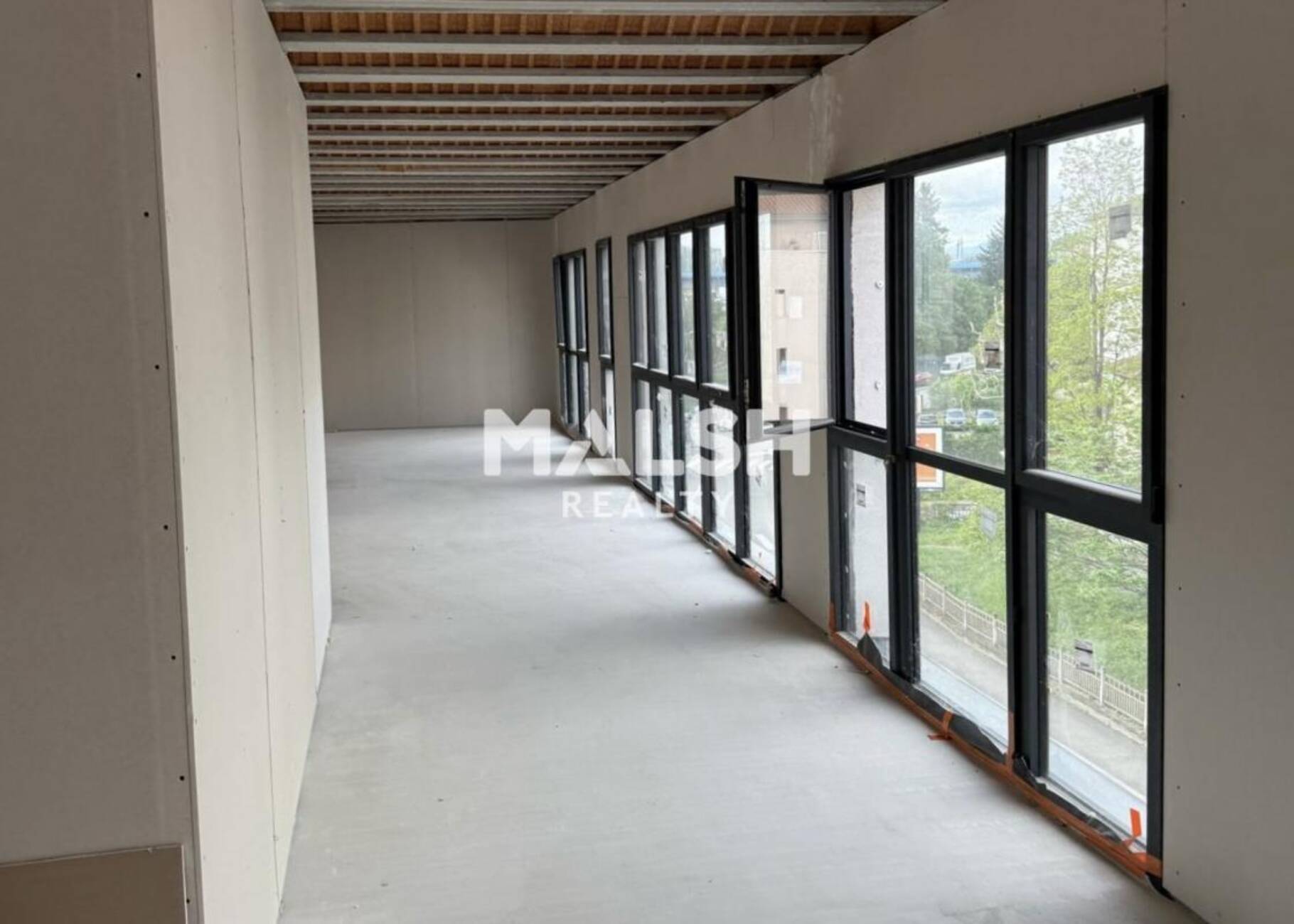 MALSH Realty & Property vous propose à la location, des bureaux d'une surface d'environ 171 m² au R+3, avec une terrasse privative de 94 m² dans le 9ème arrondissement de Lyon. Bâtiment neuf, Accessibilité PMR, 2 places de parking extérieures privatives incluses, et un parking pour les clients.