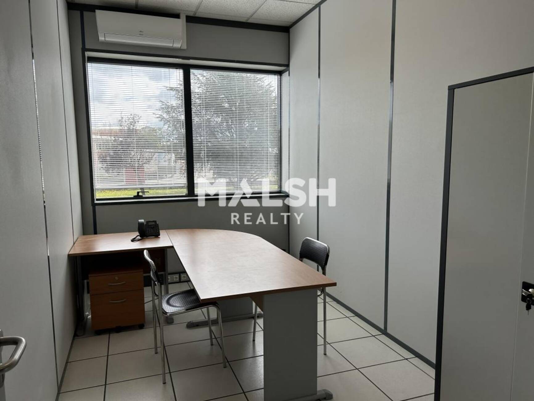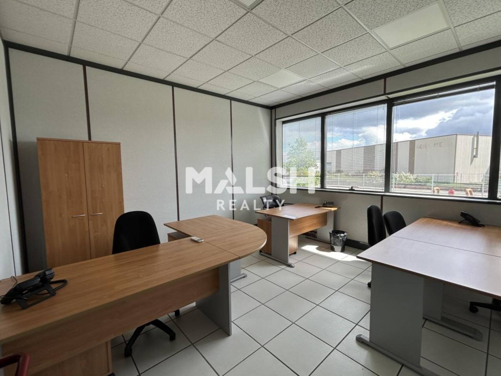 - Bureaux meublés (bureau, chaise, caisson, poste téléphonique)