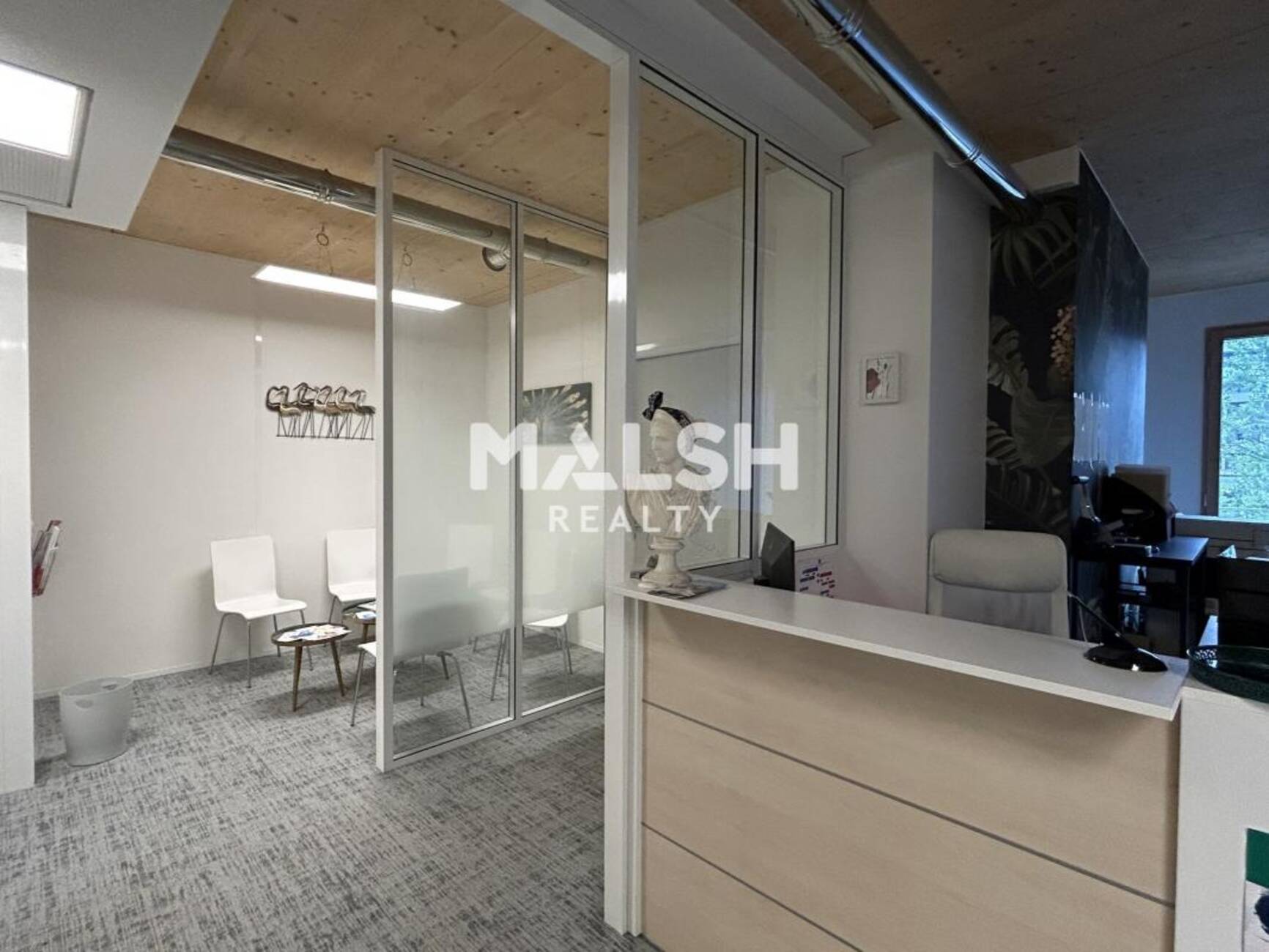 - Un accueil, 4 bureaux individuels, un bureau double, une grande salle de réunion, un espace réfectoire équipé, un sanitaire privatif.