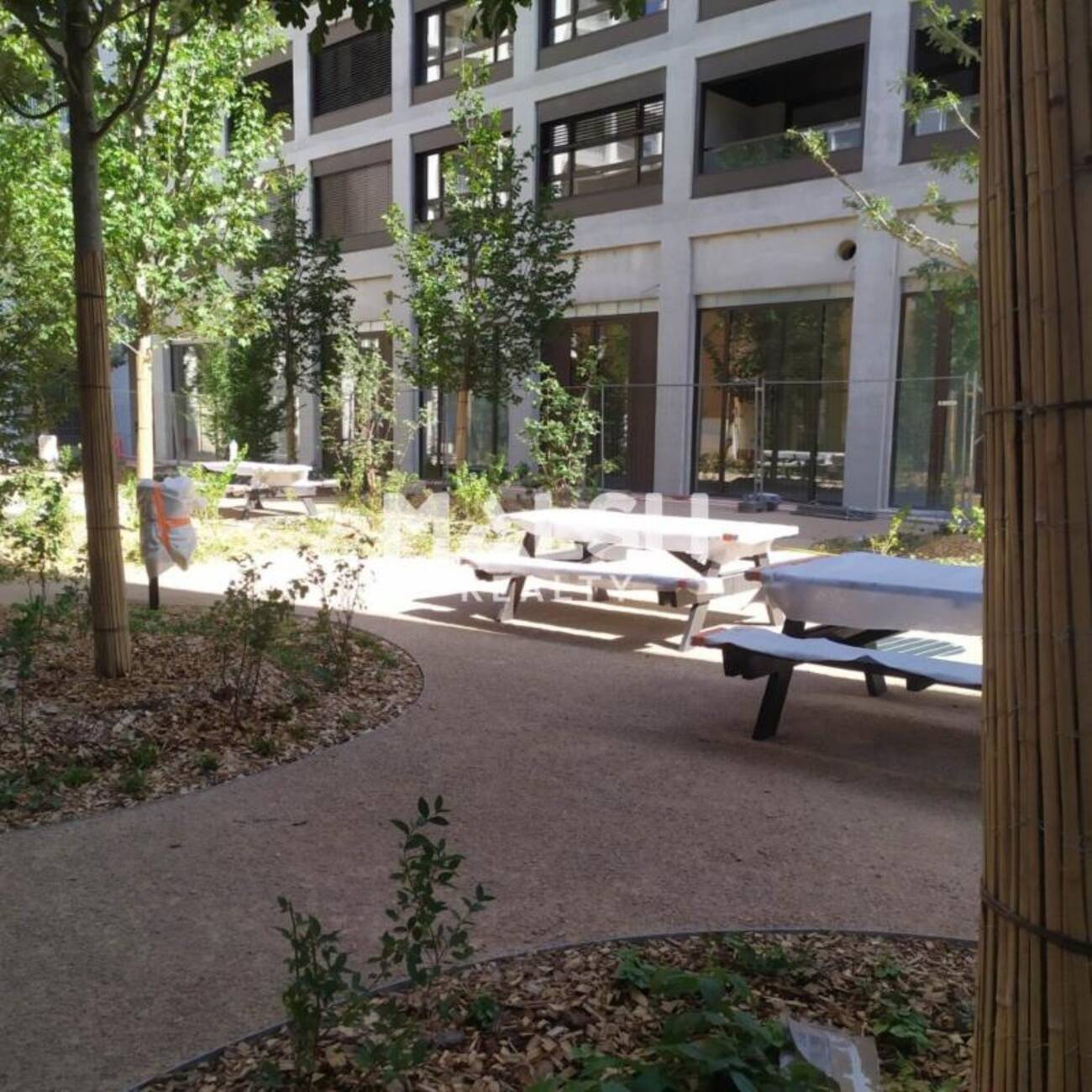 - Belle cour intérieure jardinée, Terrasses double face, béton aspect glacé traité au quartz.