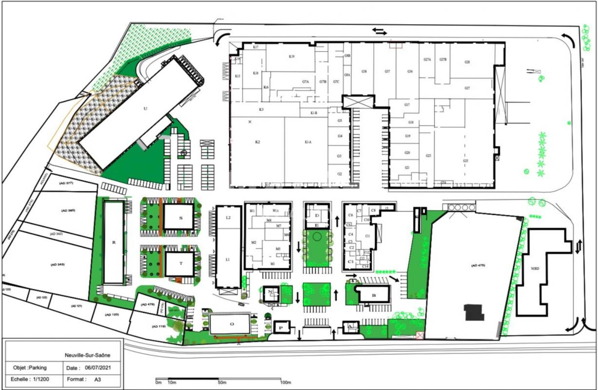 - Bâtiment O : Bureaux d'environ 540 m² répartis sur 2 niveaux