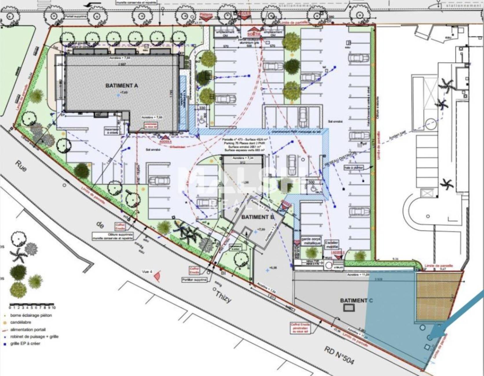 - Accès VL rue Philippe Héron via un portail motorisé