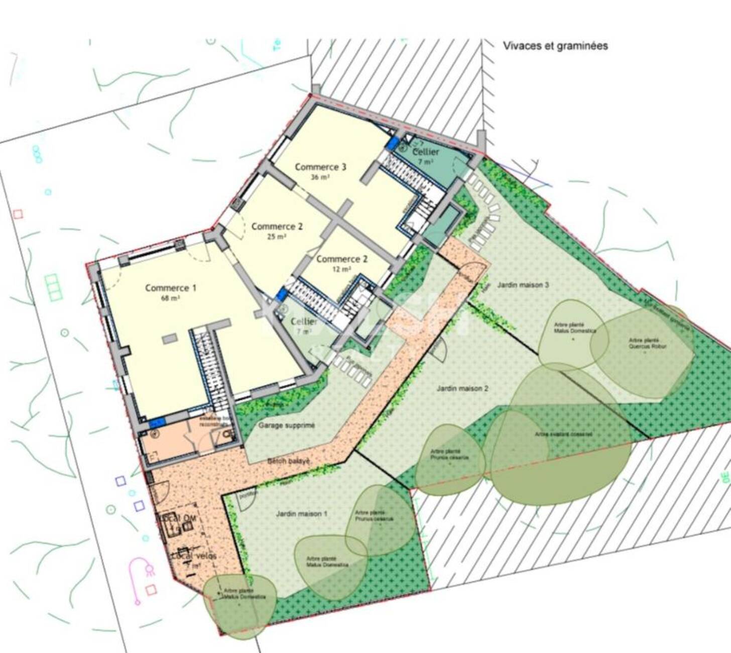 - Lot 1 : Local commercial d'environ 68 m² au RDC + Une cave au sous-sol de 71 m²