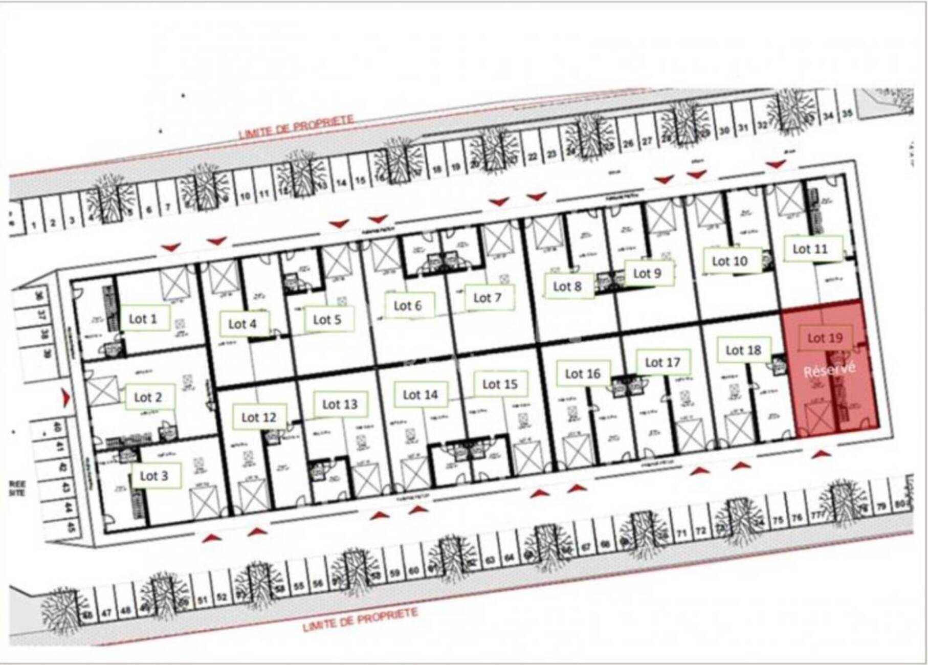 - Bureaux au RDC livrés aménagés non cloisonnés (4 prises de courant dans le bureau RDC et 2 prises RJ45)