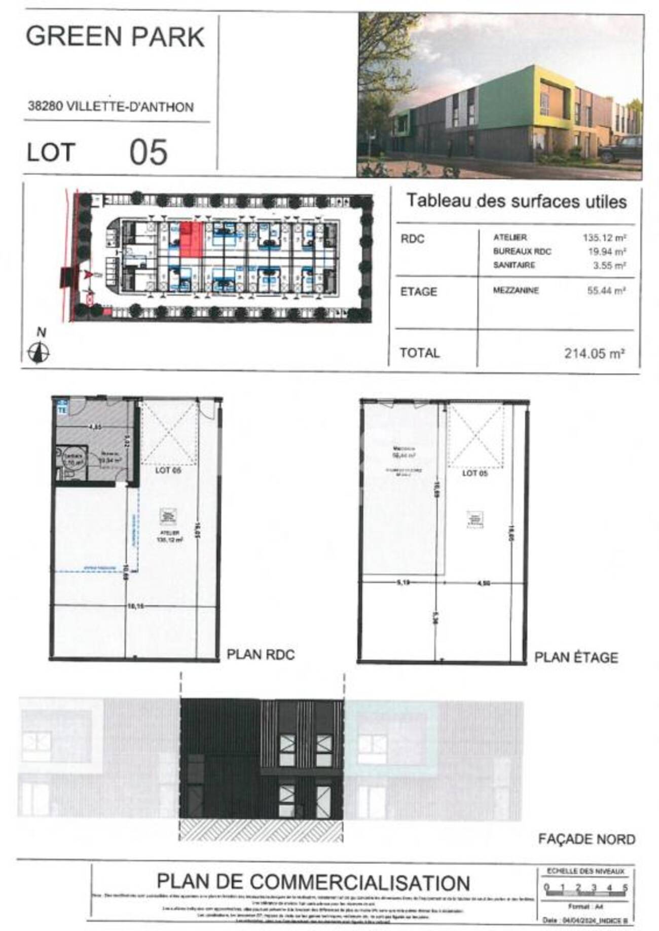 MALSH Realty & Property vous propose à la location à Villette-d'Anthon, au sein d'un nouveau parc d'activités, un local d'activités neuf d'une surface totale d'environ 214,05 m² comprenant 135,12 m² d'activités au RDC, 19,94 m² de bureaux au RDC, 3,55 m² de sanitaires en RDC et 55,44 m² de mezzanine.