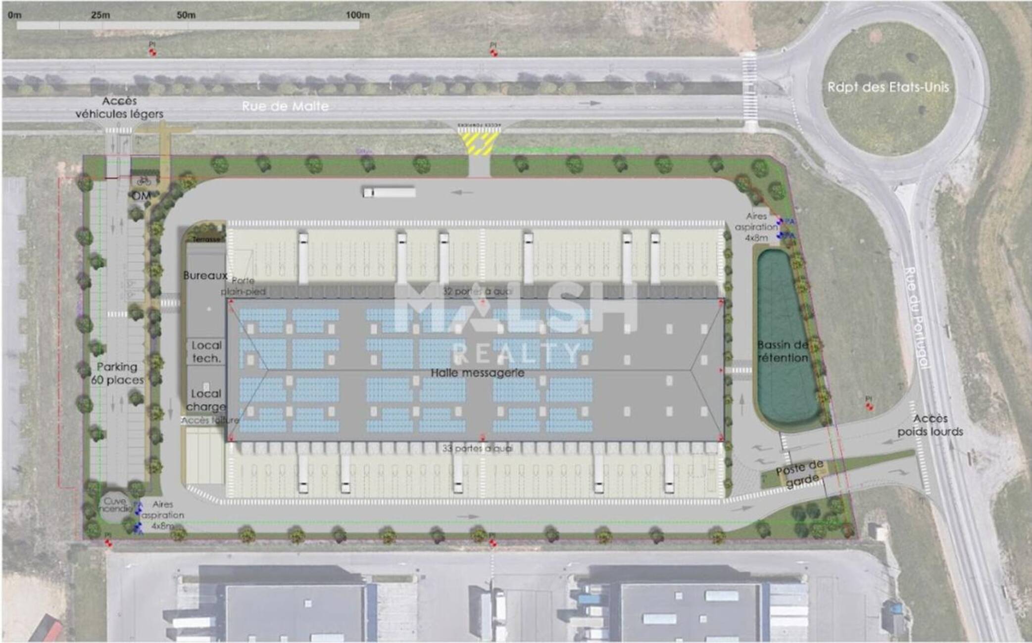 - Halle de messagerie : 6 085 m²