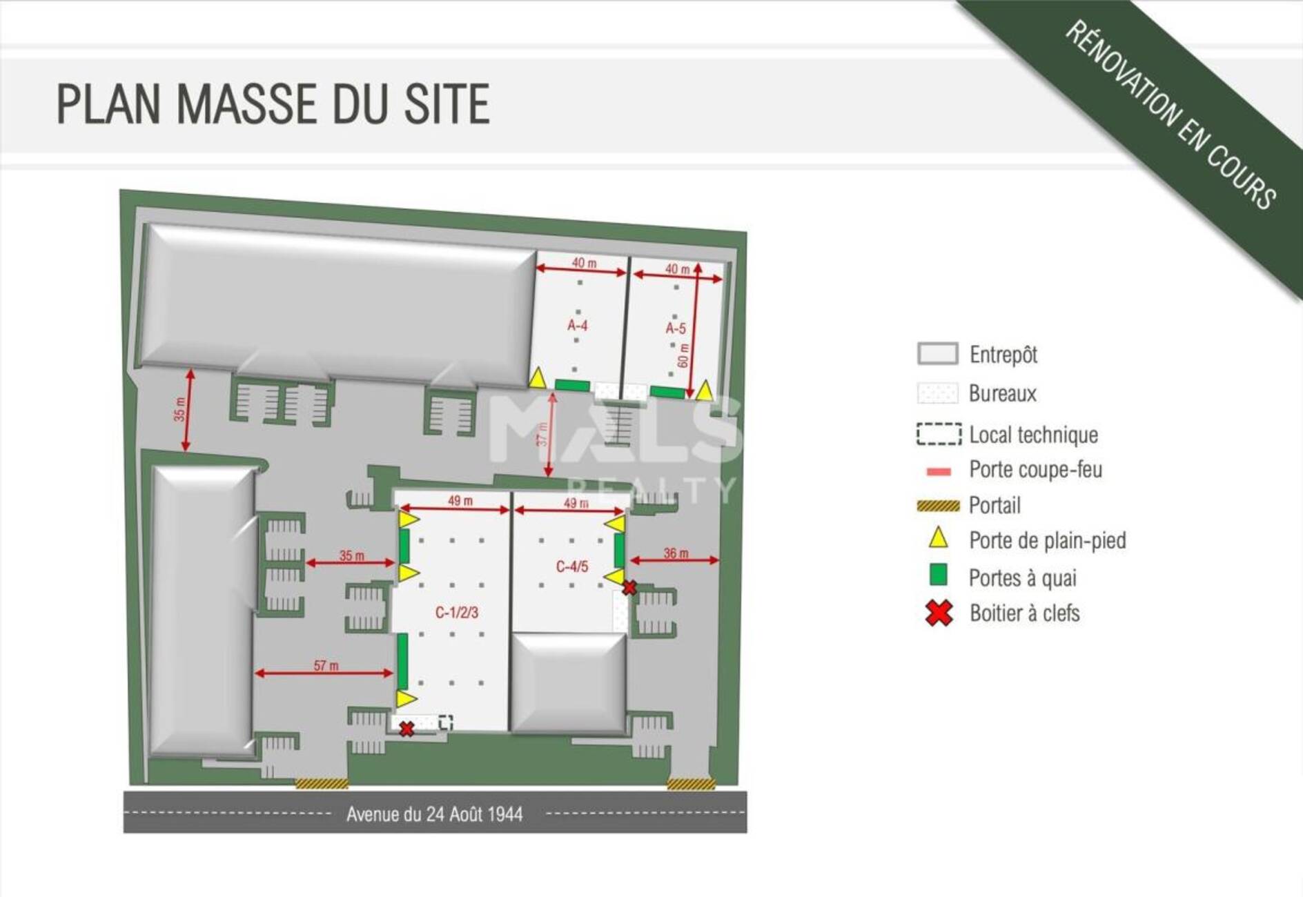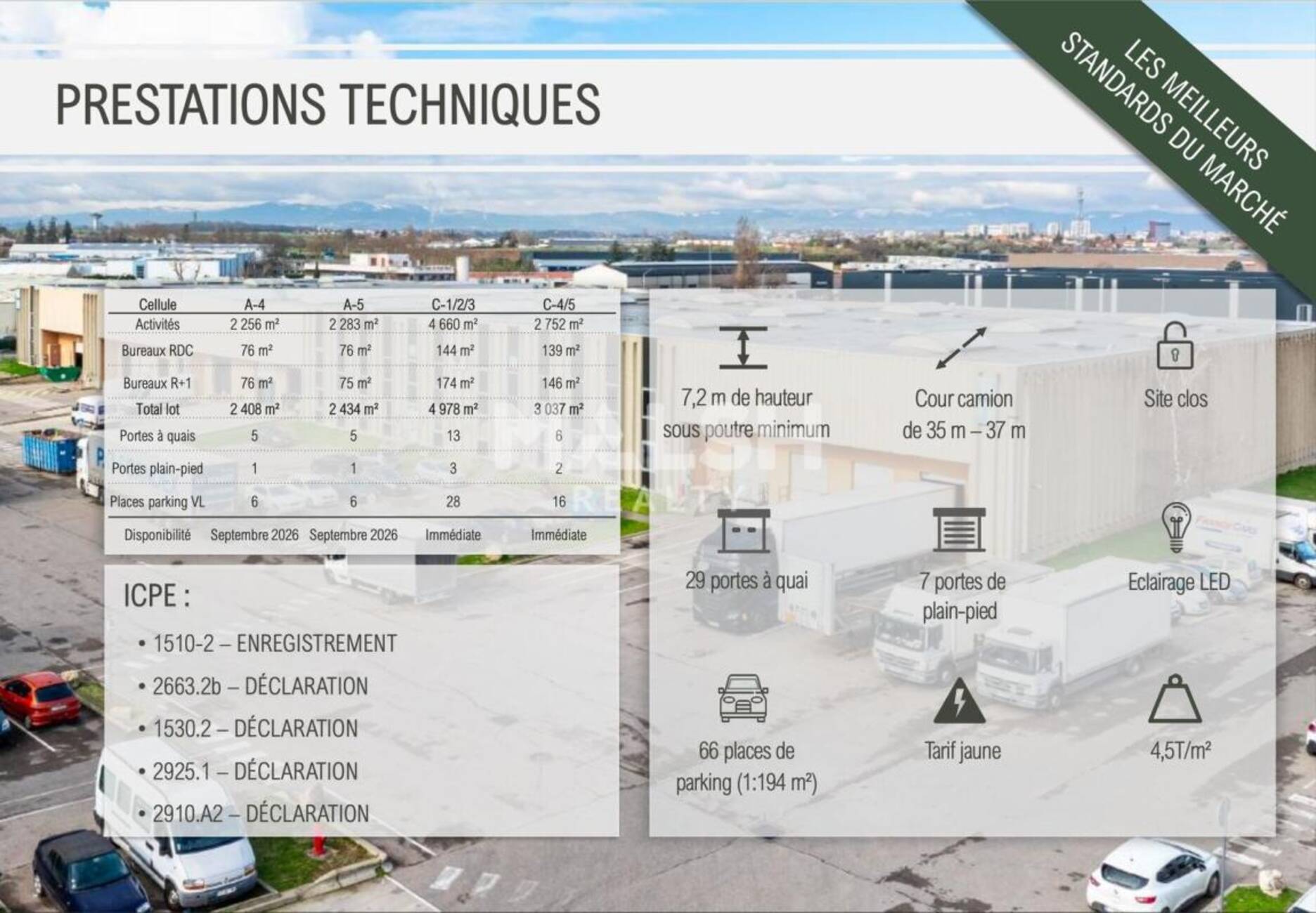 MALSH Realty & Property vous propose à la location, au sein d'un parc logistique à Corbas idéalement placé, des cellules d'activités rénovées et équipées de nombreux quais, d'une surface totale d'environ 12 857 m² divisibles en 4 lots à partir de 2 408 m².