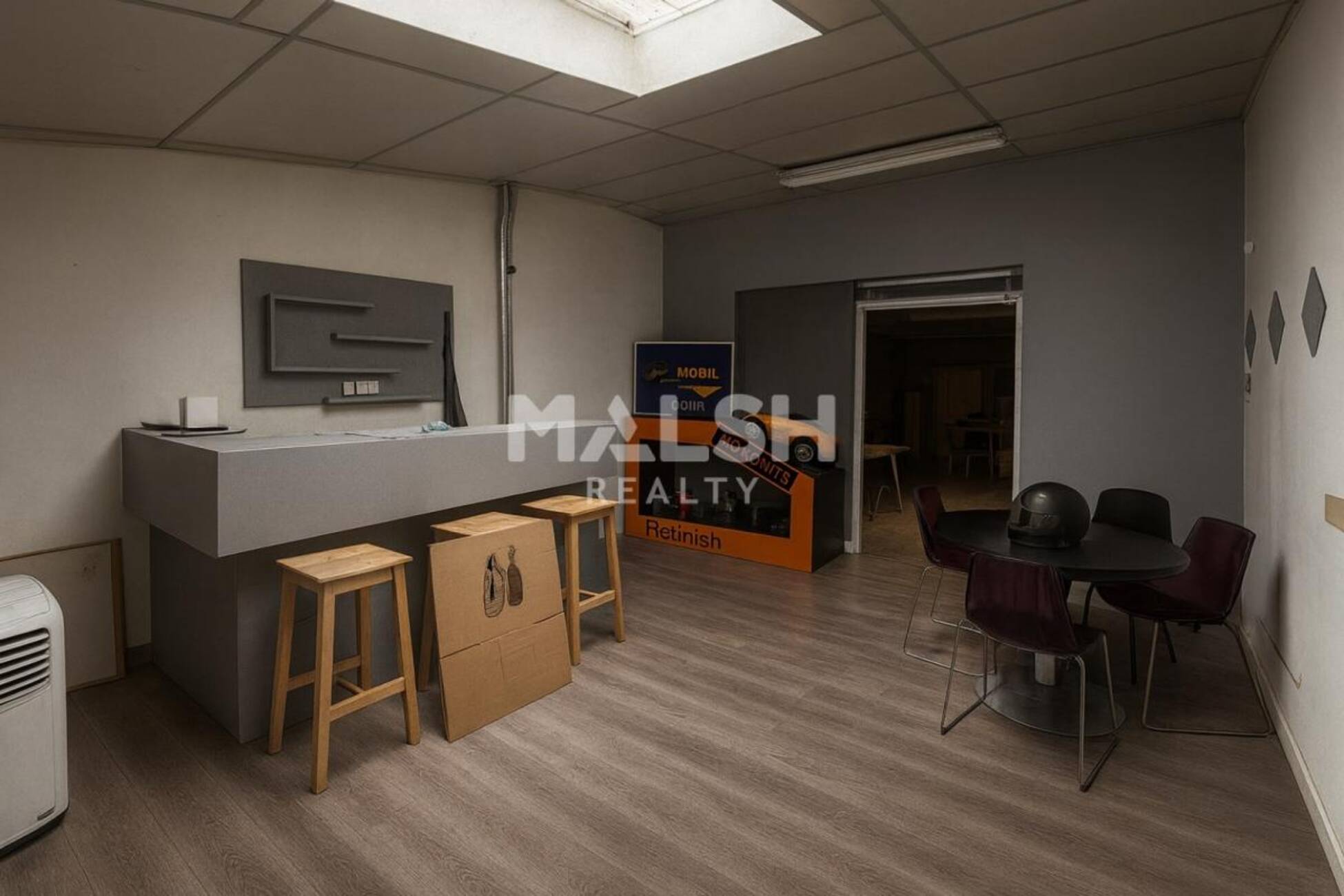 - Sols : béton (activité) / parquet (bureaux)
