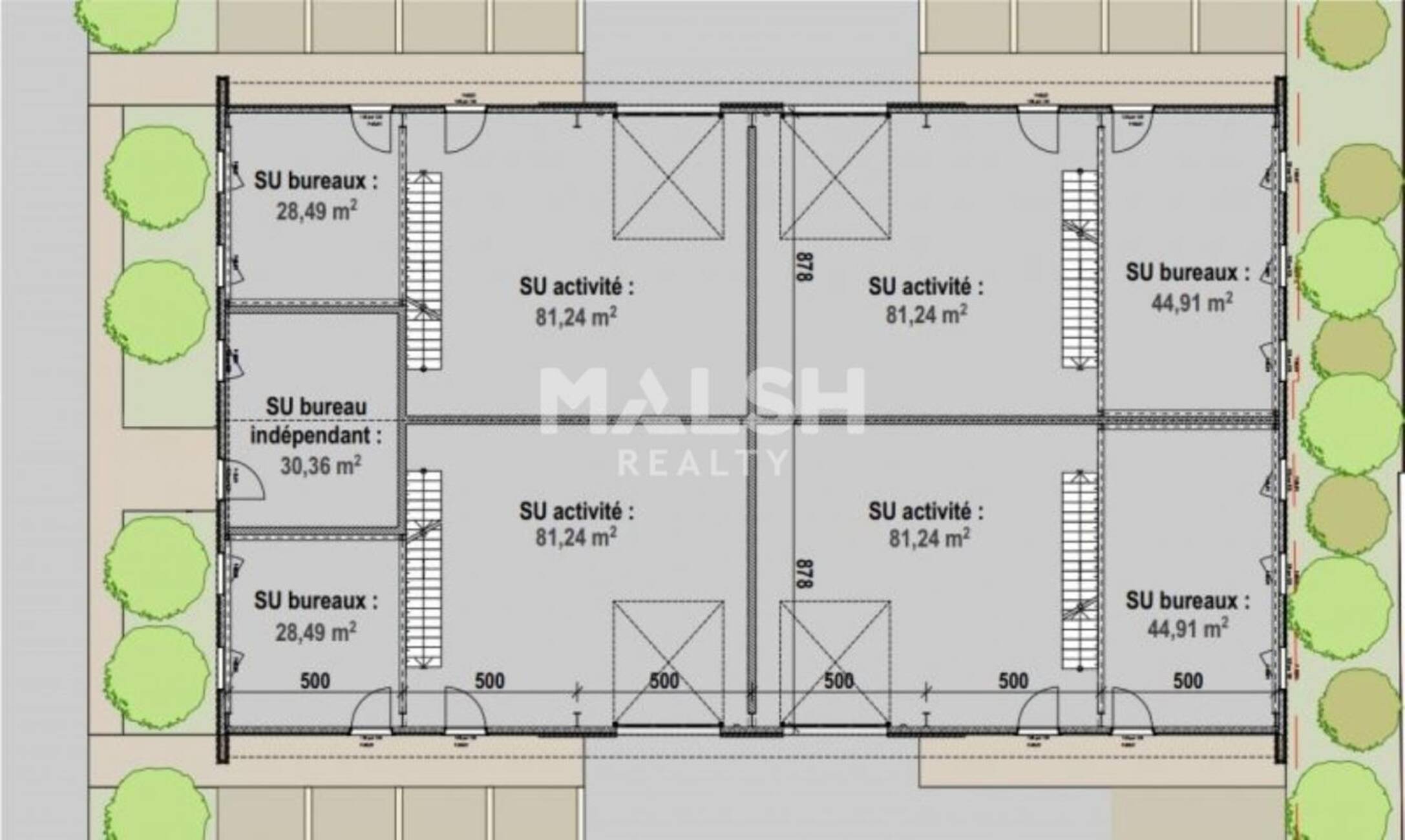 - Murs séparatifs coupe-feu 2 heures entre chaque lot