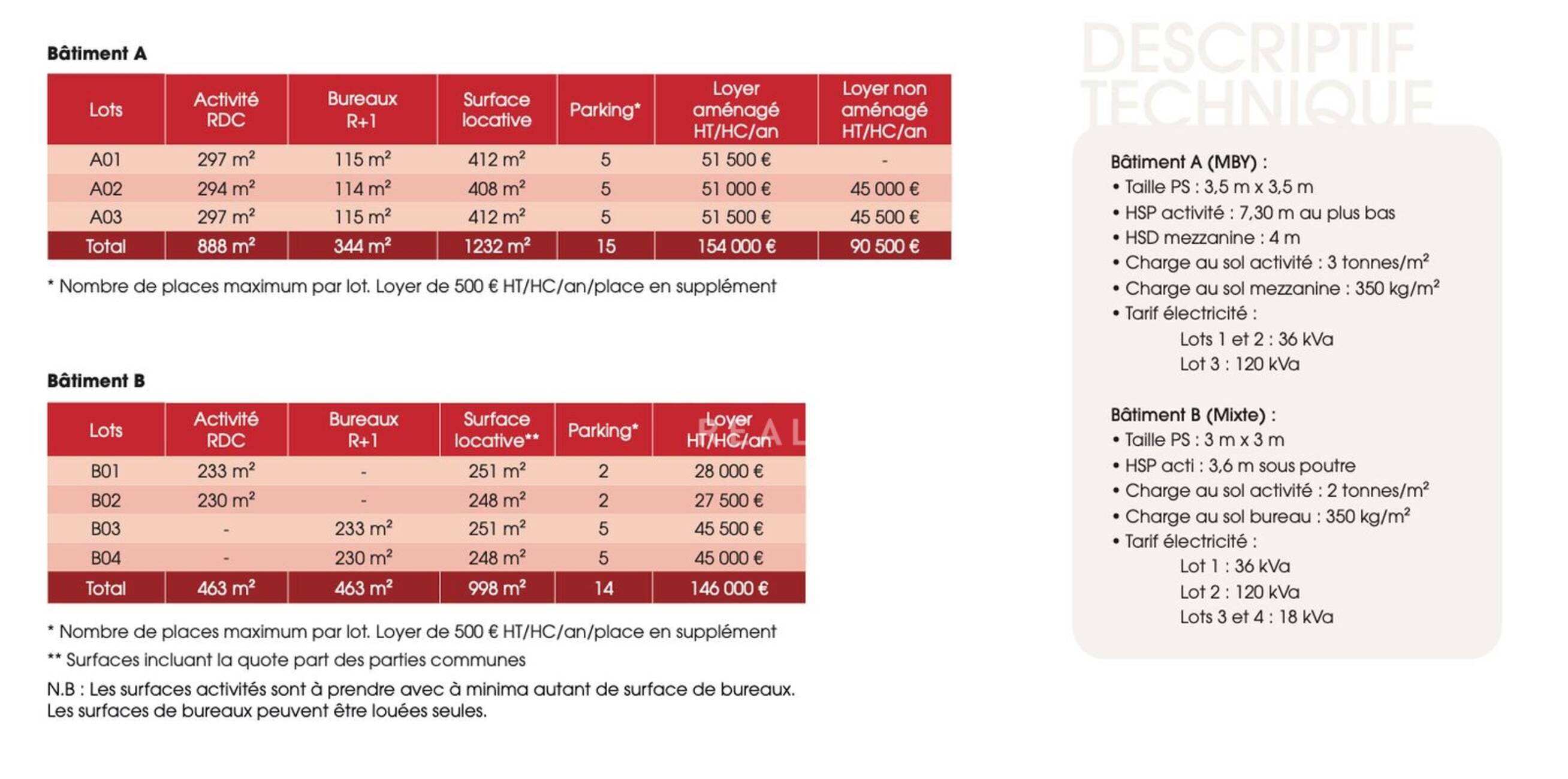 - Les surfaces activités sont à prendre avec à minima autant de surface de bureaux.