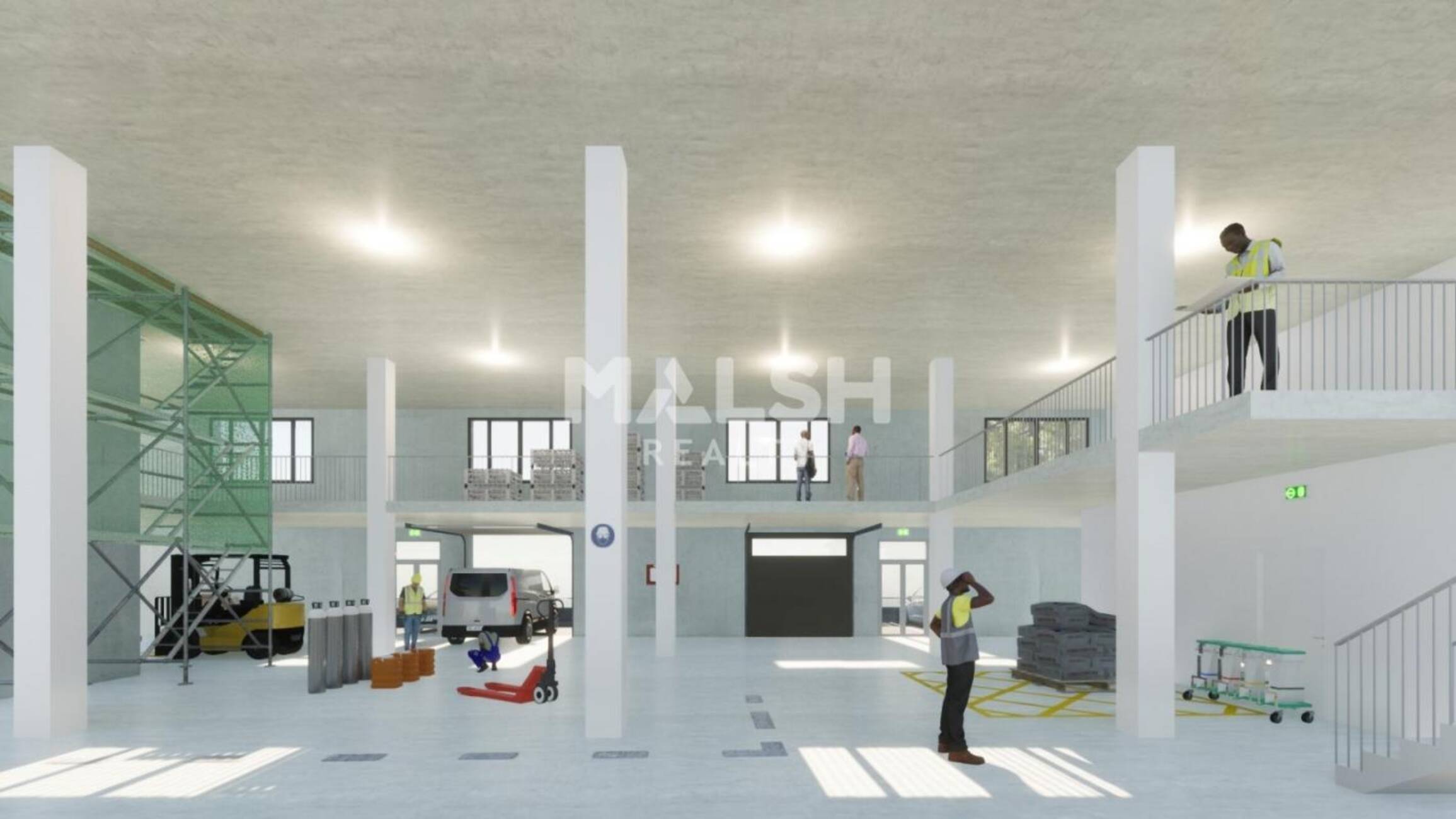 - Accès livraisons : Porte sectionnelle + Quai de déchargement via monte-charge 4000 kg (dimension cabine : 1,80 m de l x 3,65 m de P x 2,80 m de H)