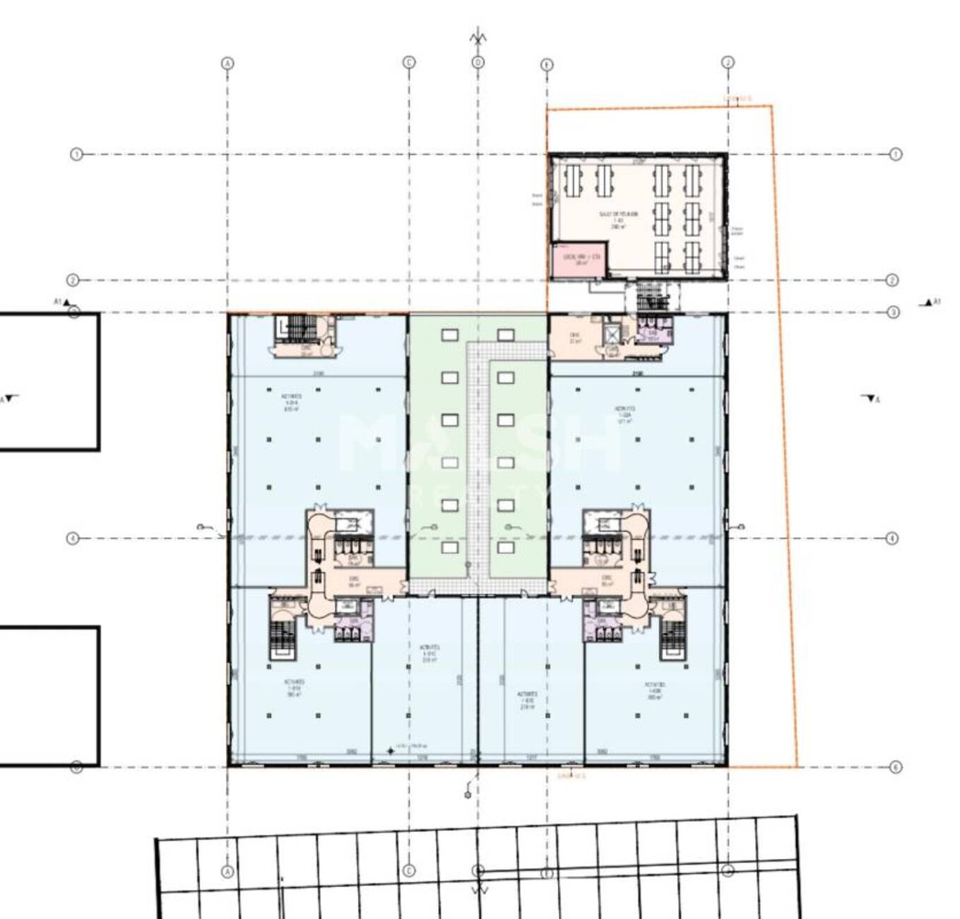 | Mezzanine | Activités | 209 | 15 % HT du loyer annuel HT/HC à la charge du preneur, payables à la signature du bail | T.V.A. (20%) | ILAT Indice des Loyers des Activités Tertiaires | Trimestriel d'avance | ||||||||||||