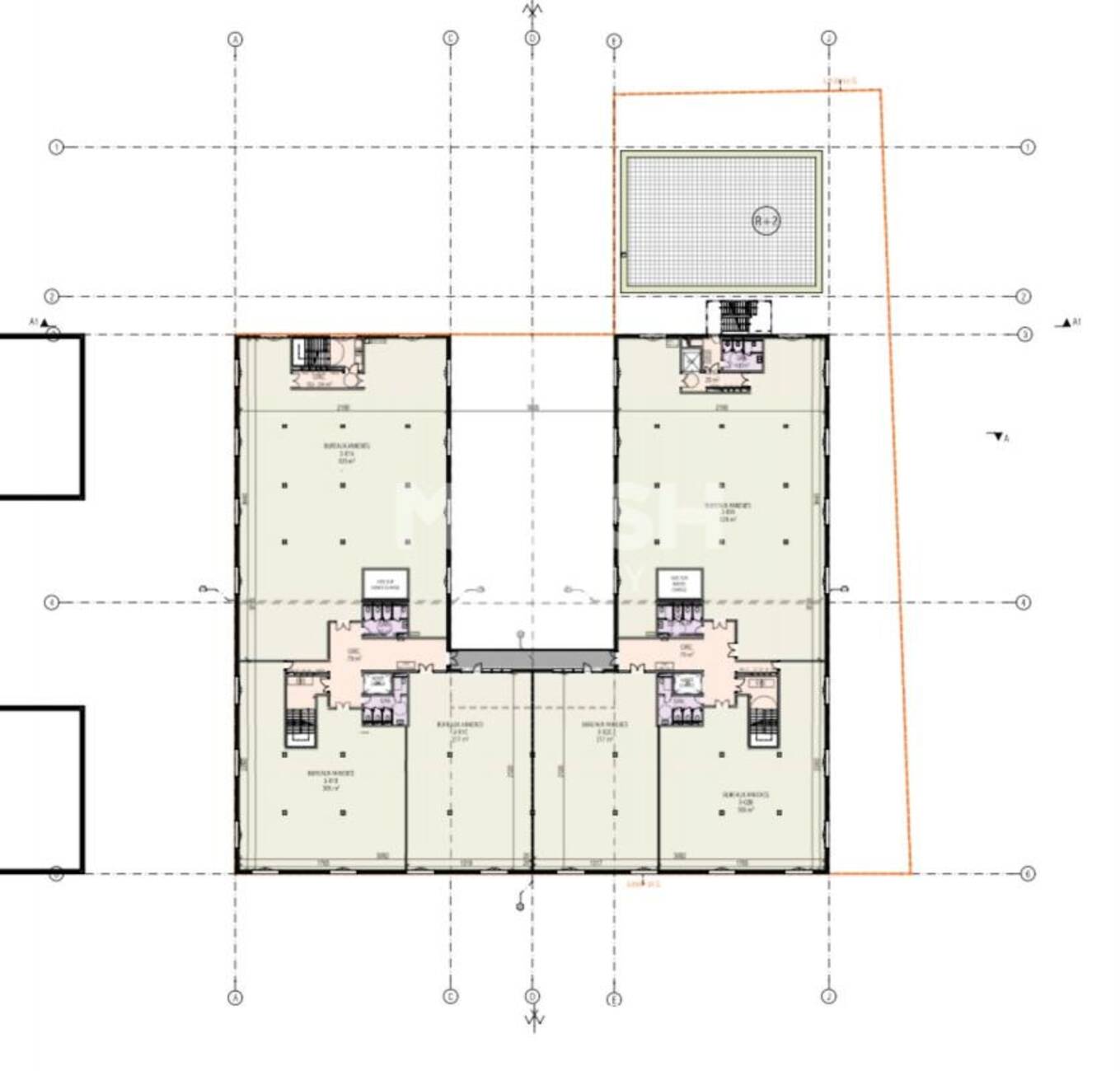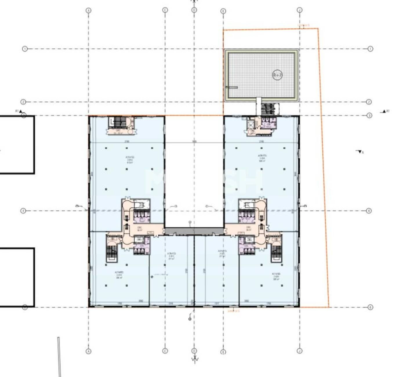- Des espaces techniques en terrasse au niveau R+4